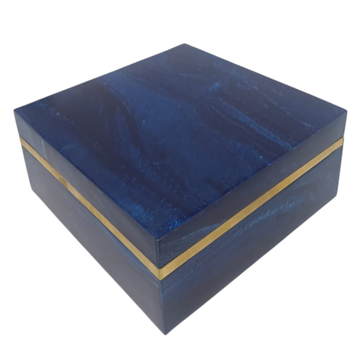 Design: Features a striking, high-gloss marbled finish in shades of deep navy and royal blue.