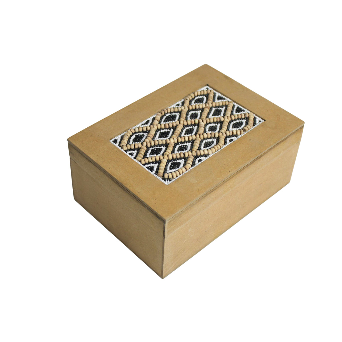 Intricate Beadwork: Features a hand-applied diamond pattern using high-quality glass and wooden seed beads.