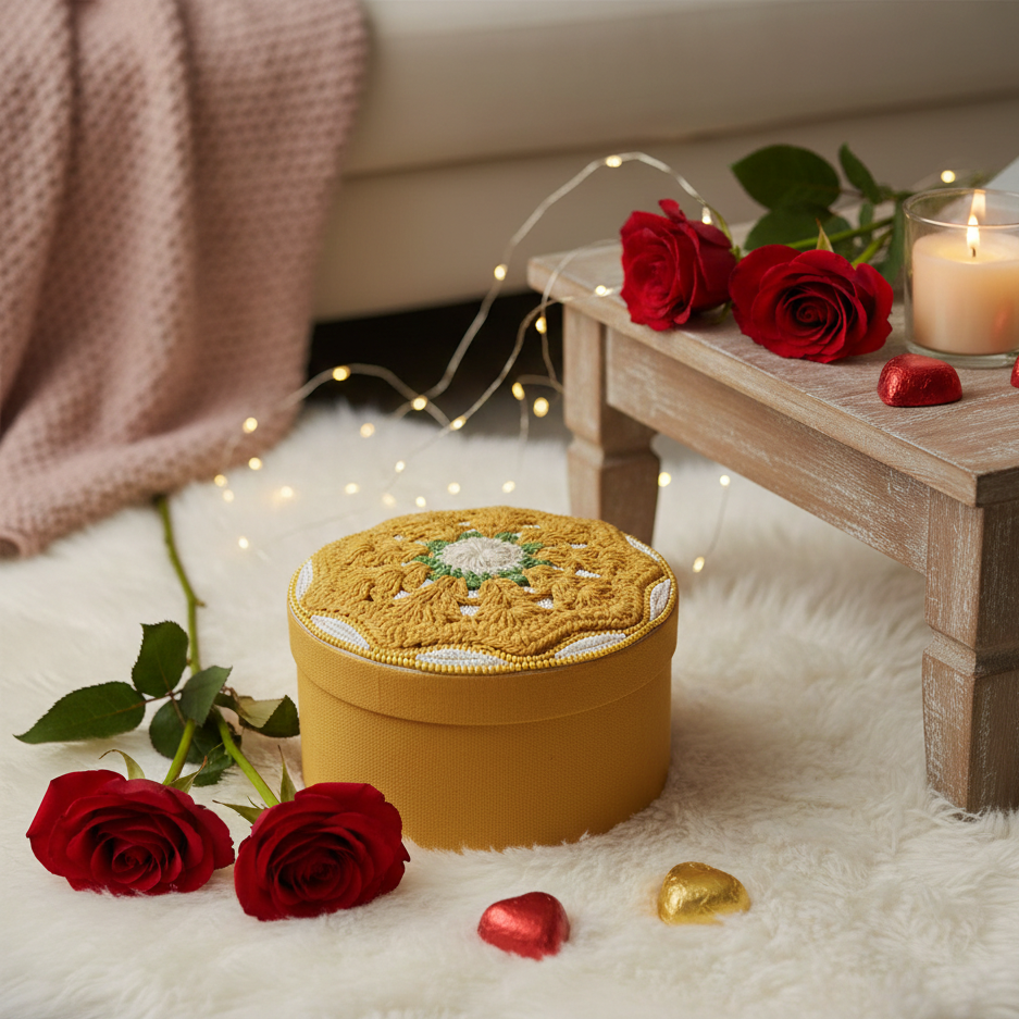 Premium Fabric Finish: Wrapped in a high-quality, mustard-gold fabric, the box offers a soft, tactile feel that is as durable as it is beautiful.