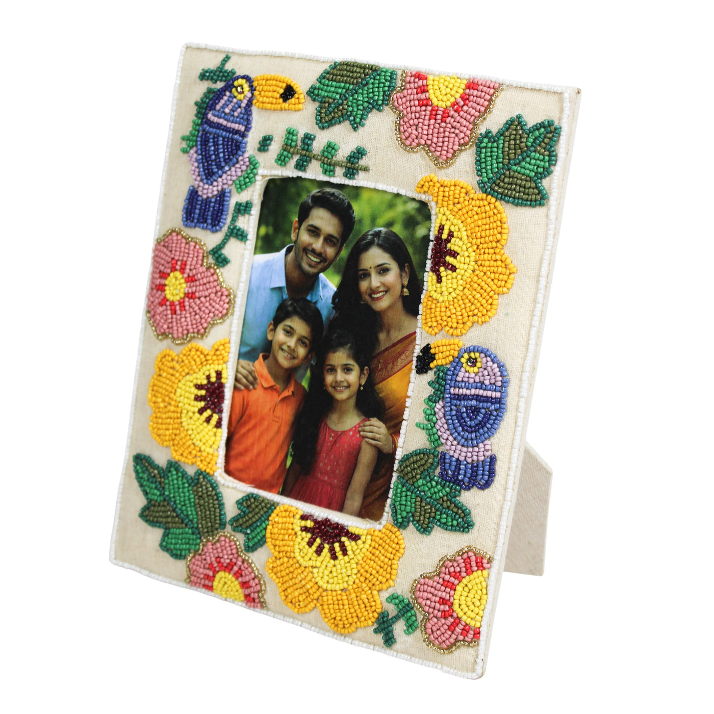 Hand-Beaded Tropical Toucan & Floral Photo Frame