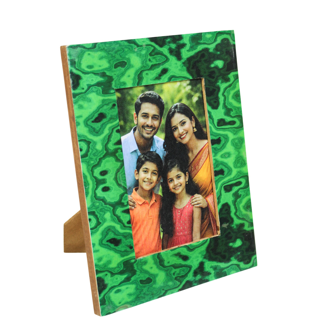 Handcrafted Malachite-Style Green Patterned Photo Frame