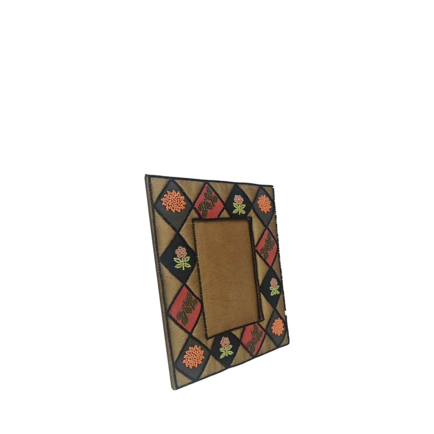 Detailed Beadwork Accents: Each floral element is enhanced with tiny, colorful seed beads, adding a 3D effect and a touch of delicate shimmer.