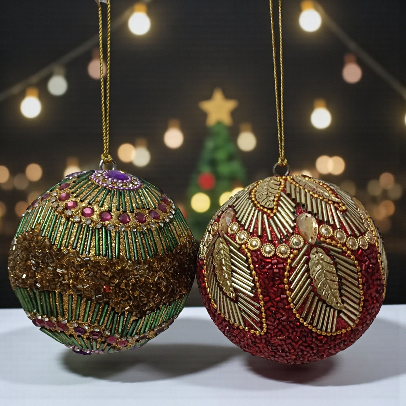 Set of 2 Embellished Balls Christmas Hangings