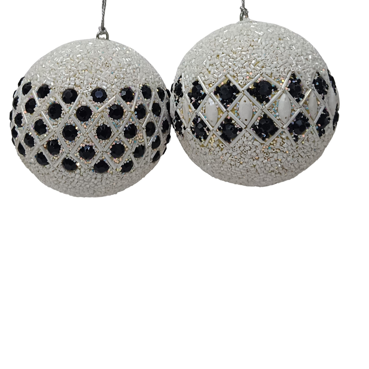 Set of 2 Glitter Beaded Balls Christmas Hangings