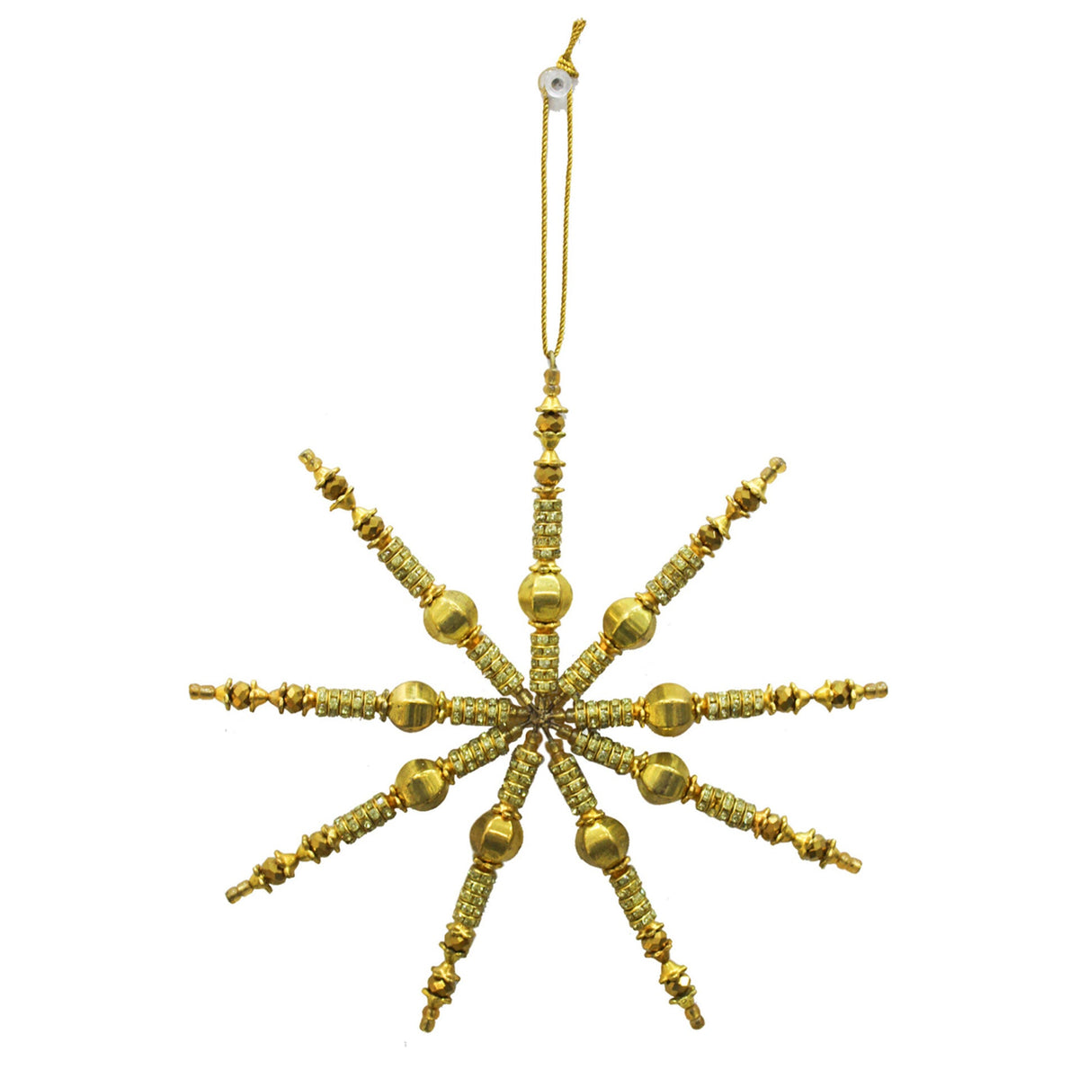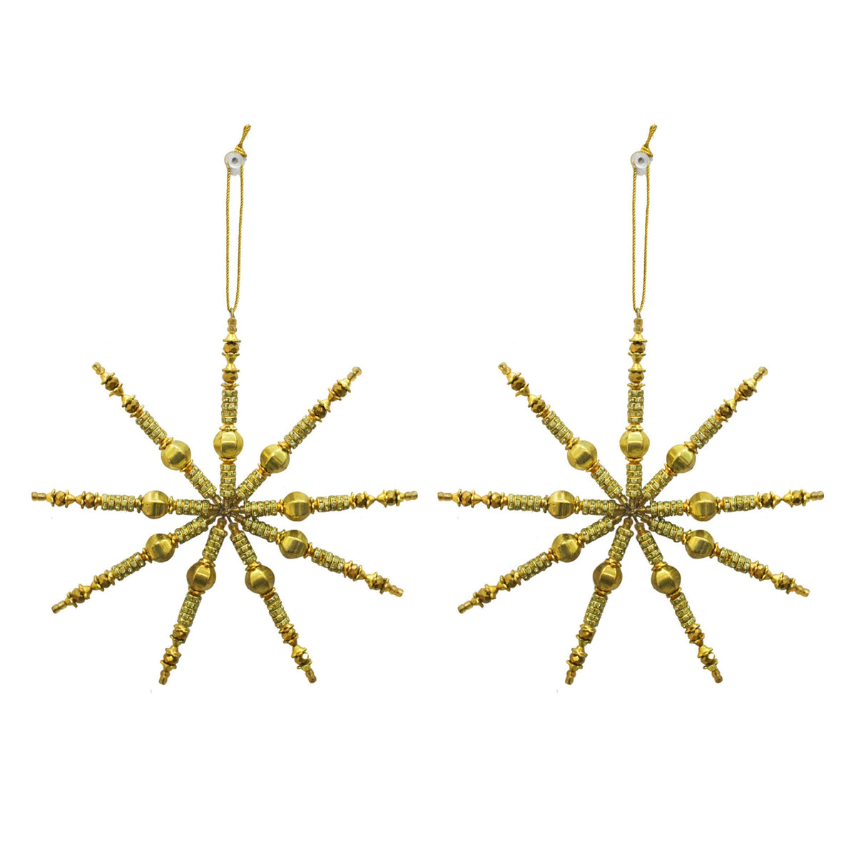 Set of 2 Goldenen Beaded Snowflake Shaped Christmas Tree Hanging Ornaments