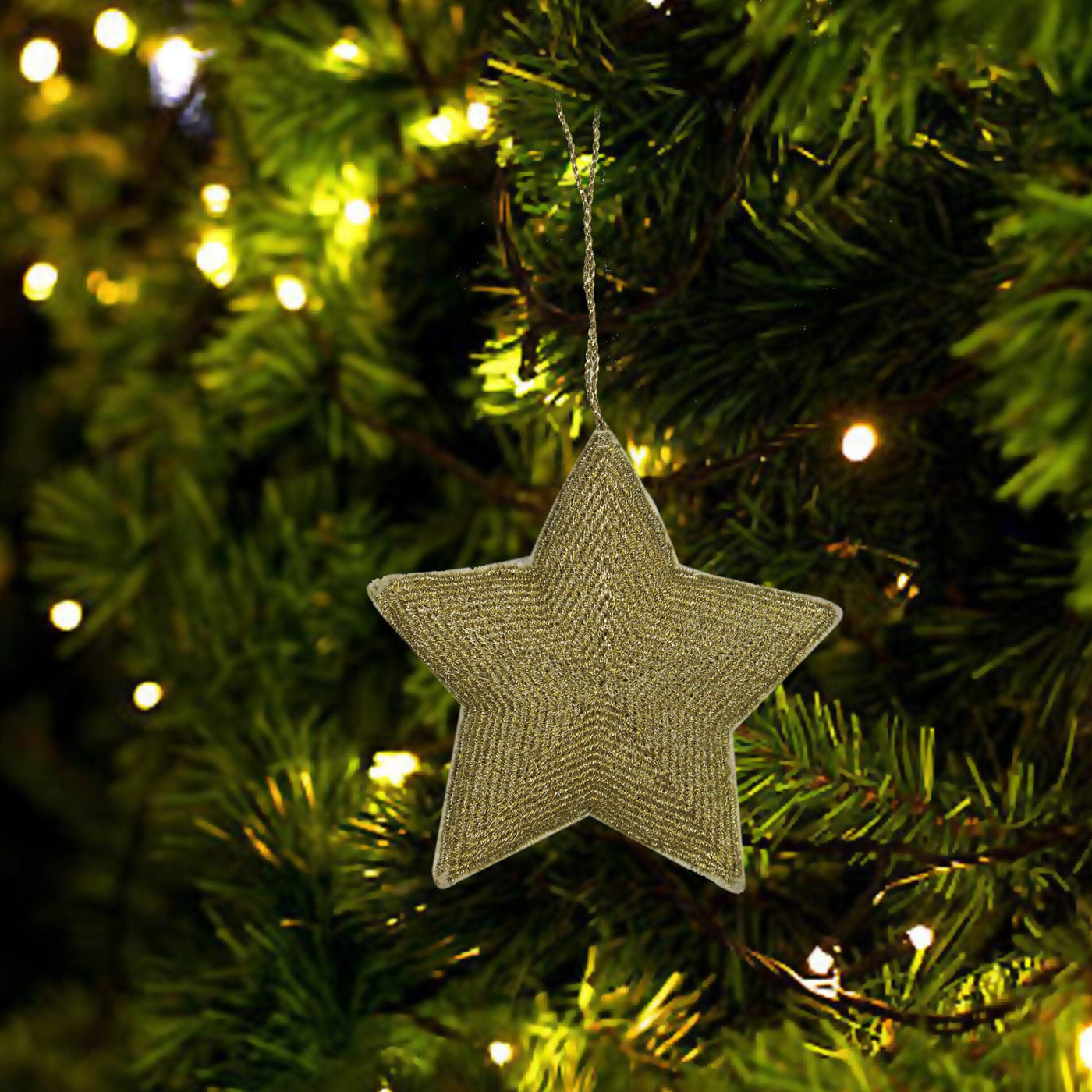 Set of 3 Goldenen Beaded Star Shaped Christmas Decorative Ornaments