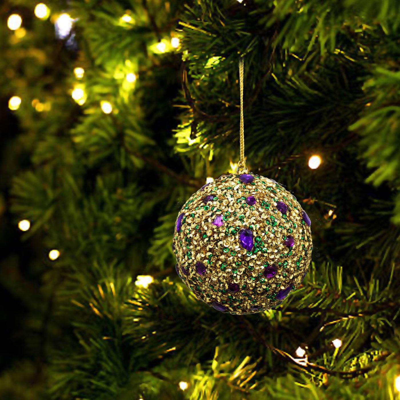 Set of 4 Goldenen Beaded / Jewelled for Christmas Tree Decoration