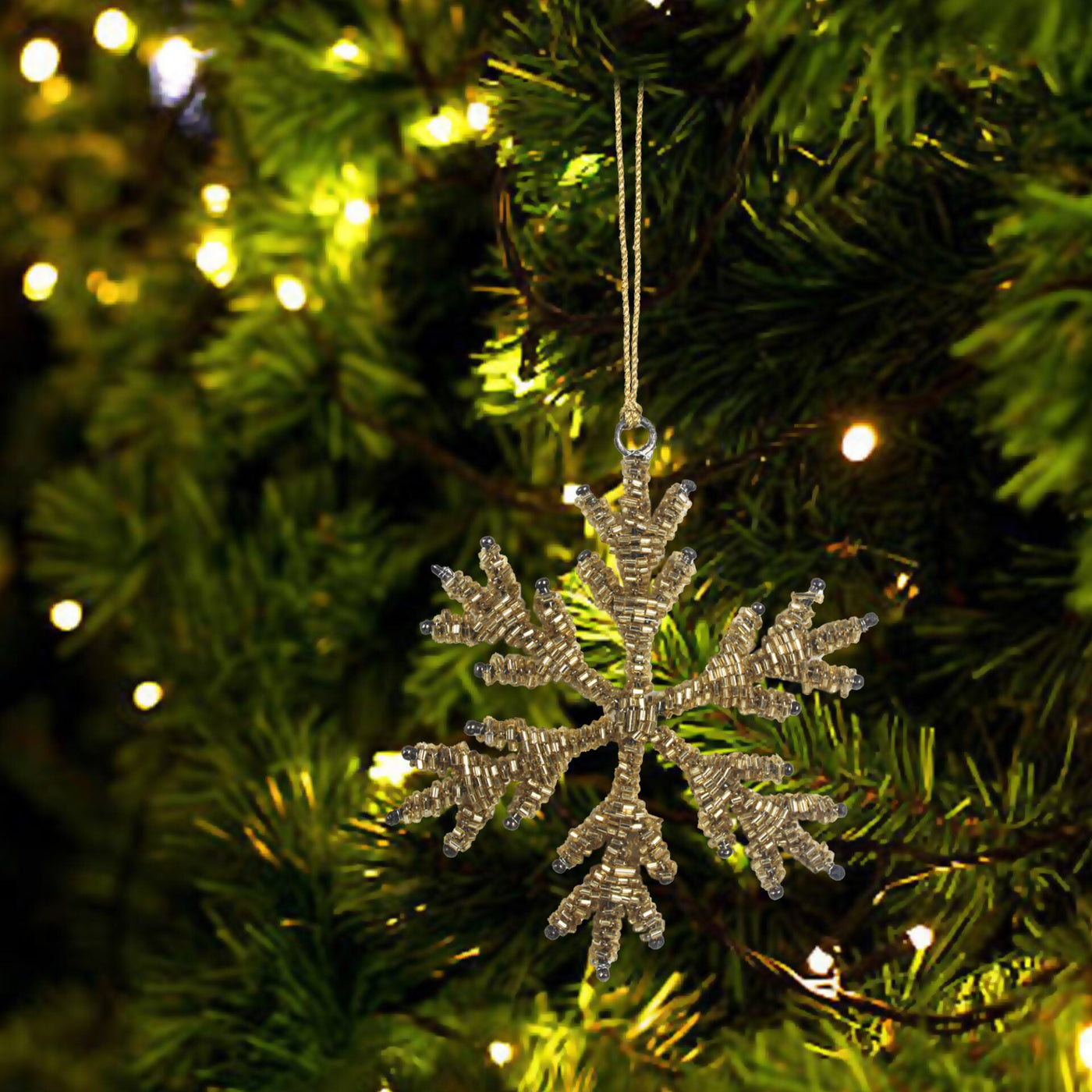 Set of 4 Goldenen Beaded Snowflake Christmas Tree Decoration