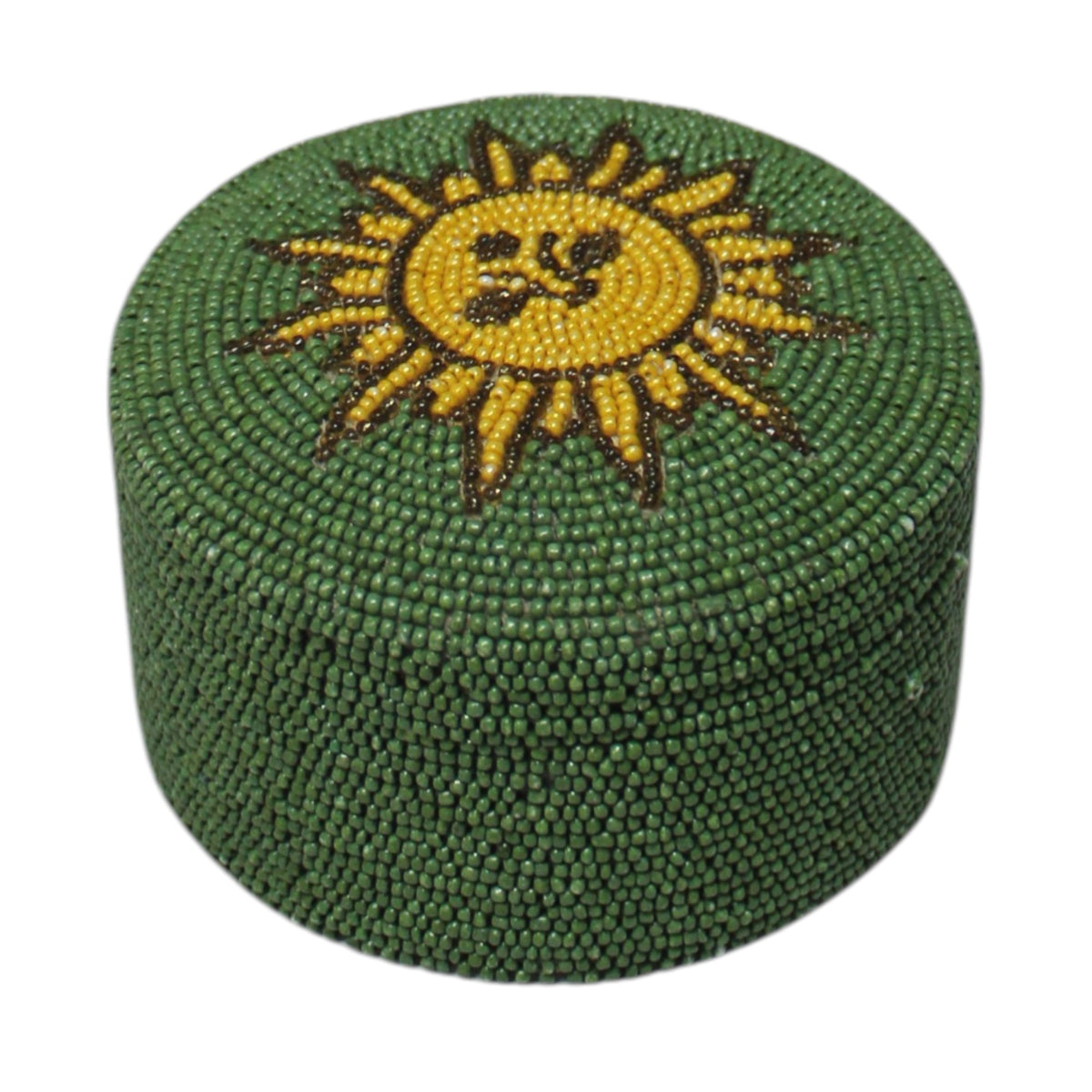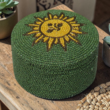 Artisanal Beadwork: Features a detailed, three-dimensional beaded flower design hand-applied to the lid.