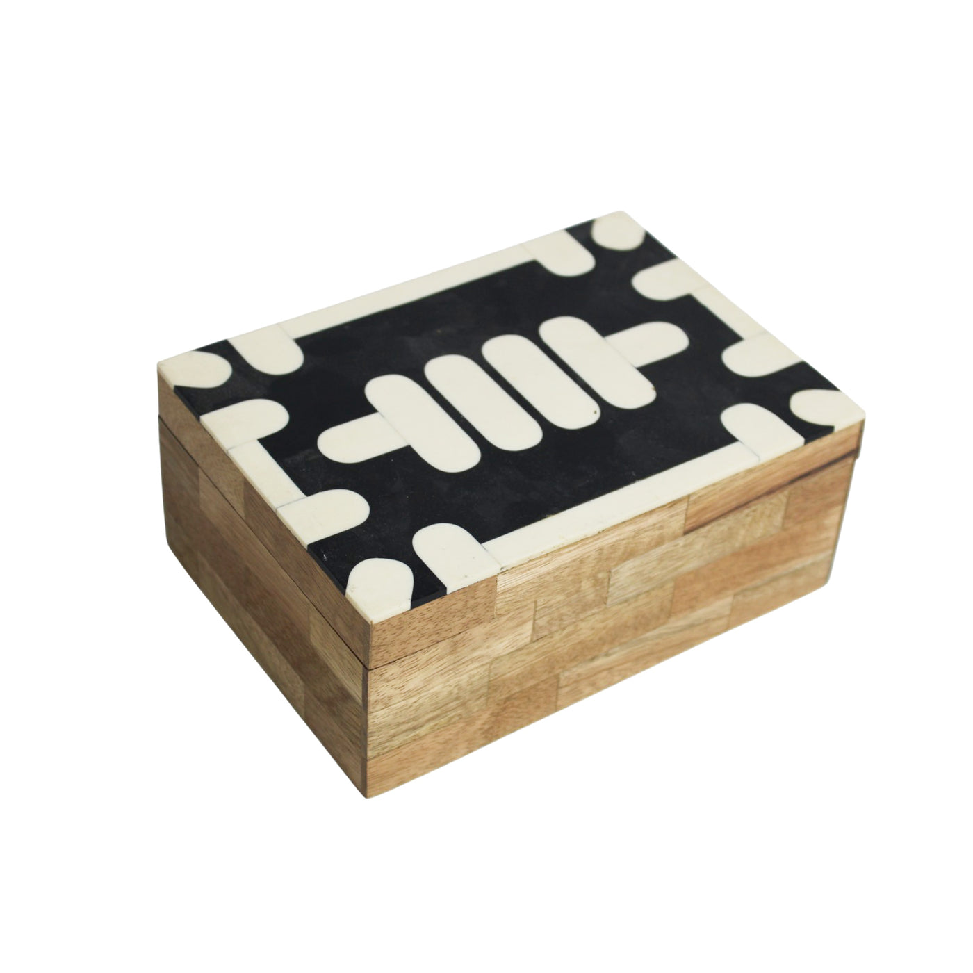 Artisanal Inlay: Features a hand-placed black and white bone inlay in a unique, high-contrast pattern.