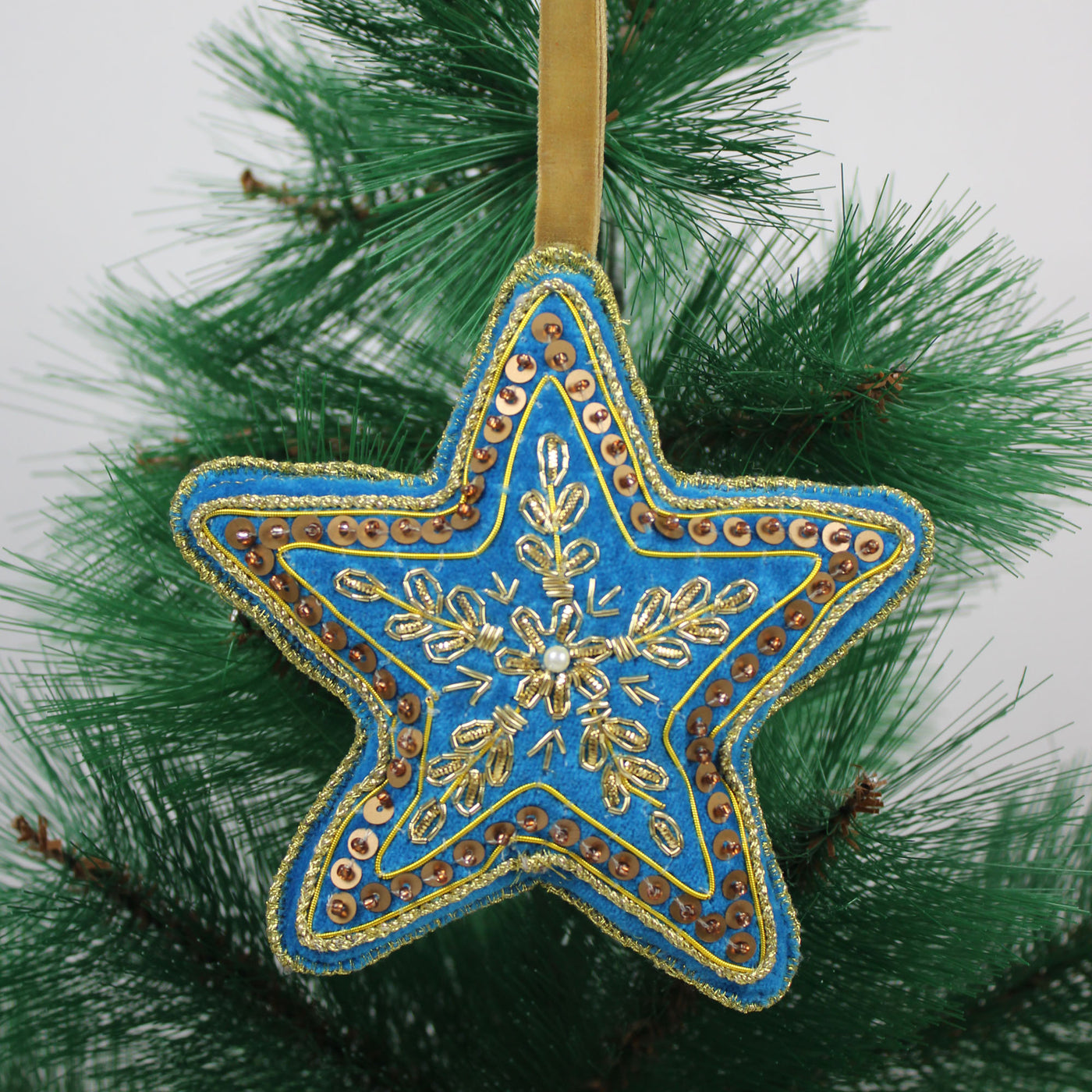 Set of 2 Beaded Star Shaped Christmas Ornament