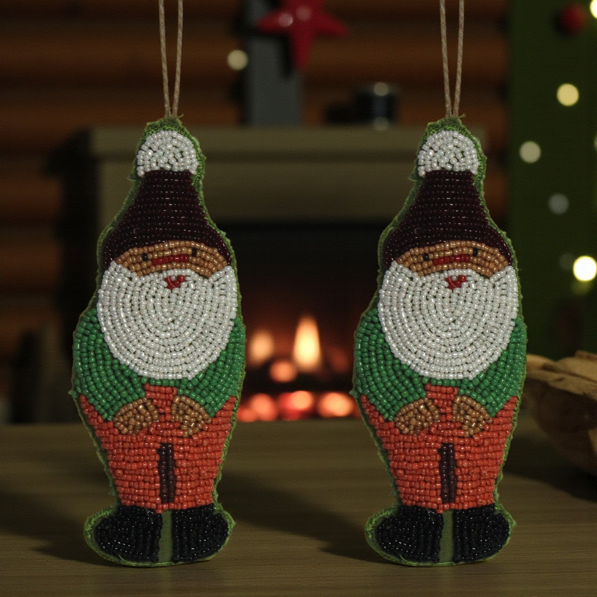 Set of 2 Embroided Santa Christmas Ornament Tree Hanging