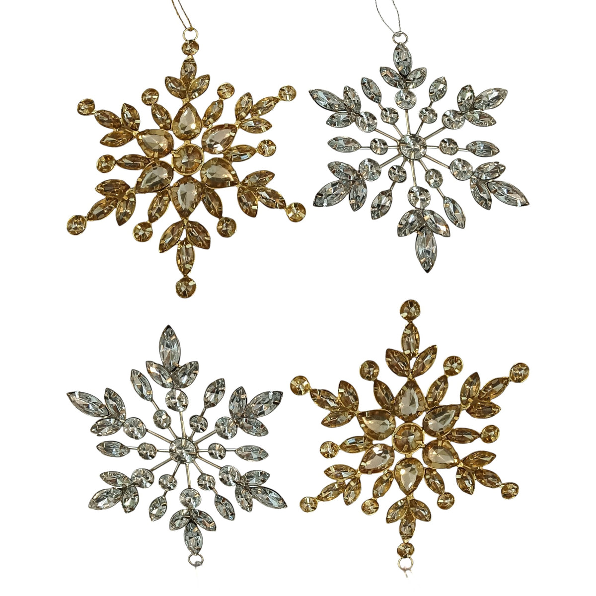 Set of 4 Jewelled Snowflake Hanging Ornaments for Christmas Tree