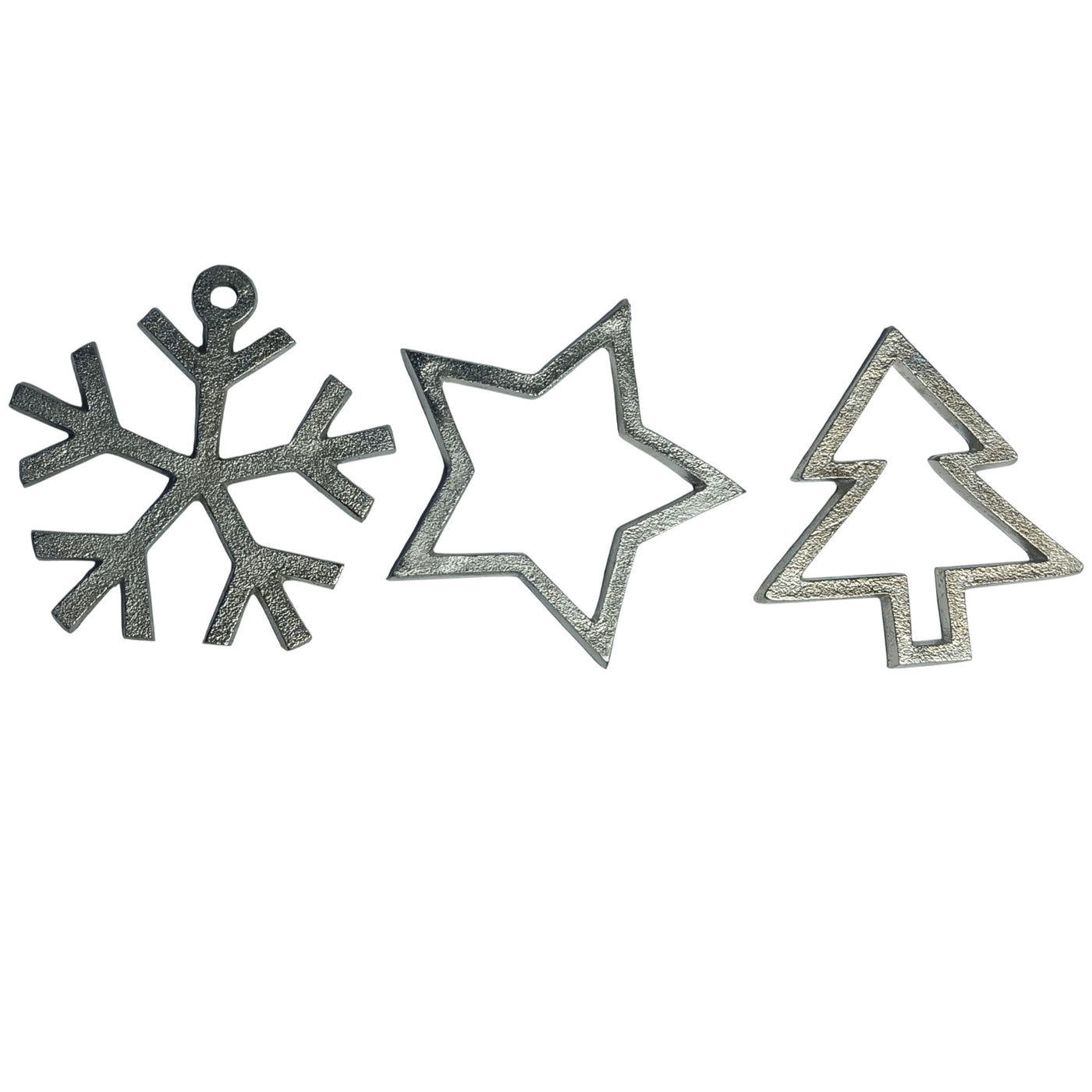 Set of 3 Silver Metal "Star / Snowflake / Tree " Hanging Christmas Ornaments