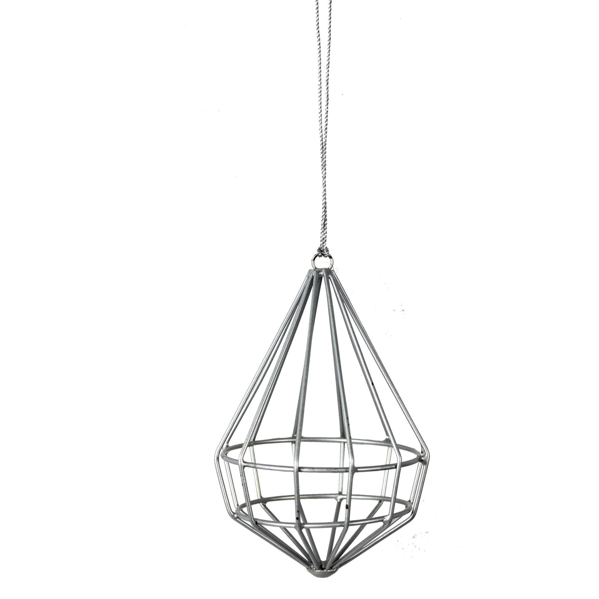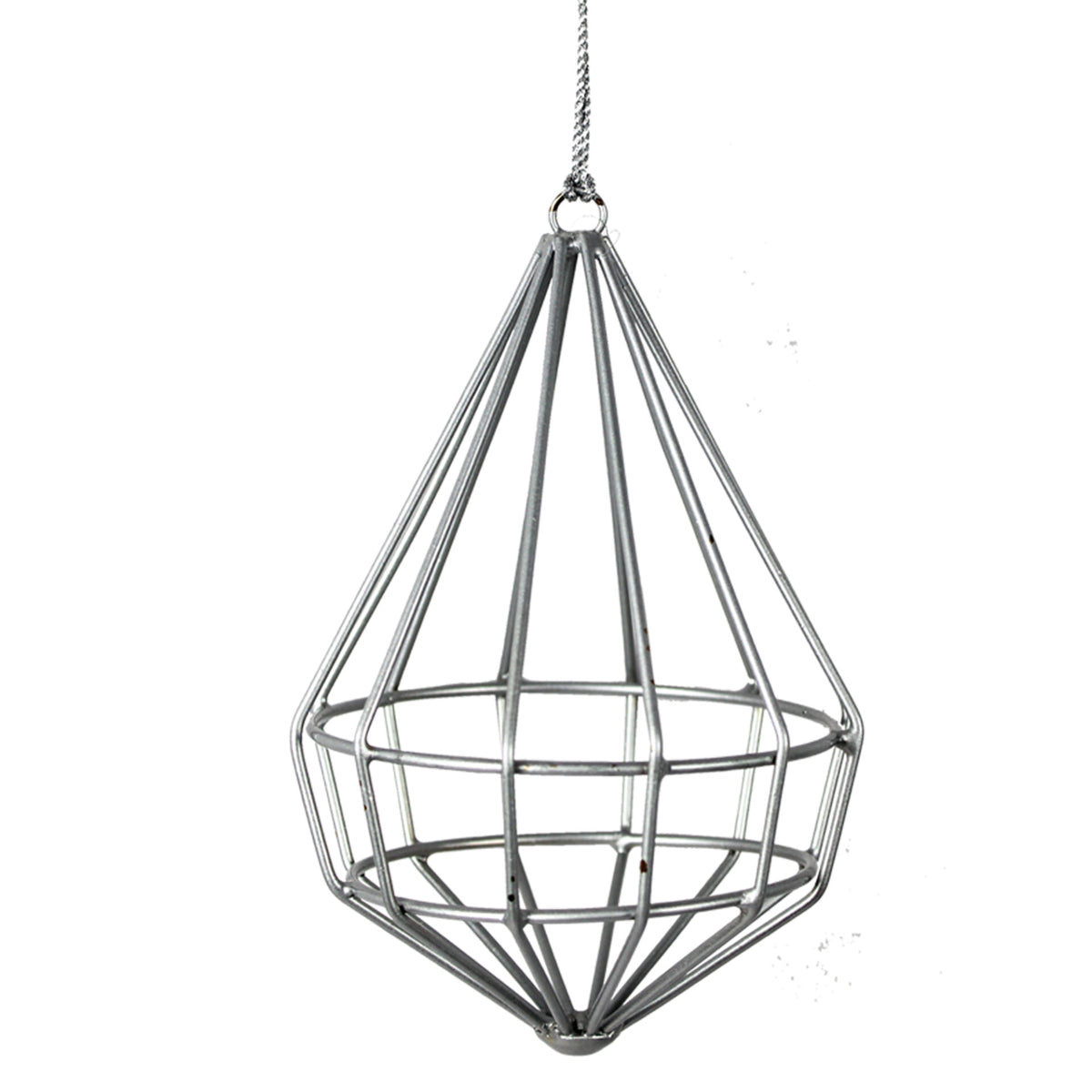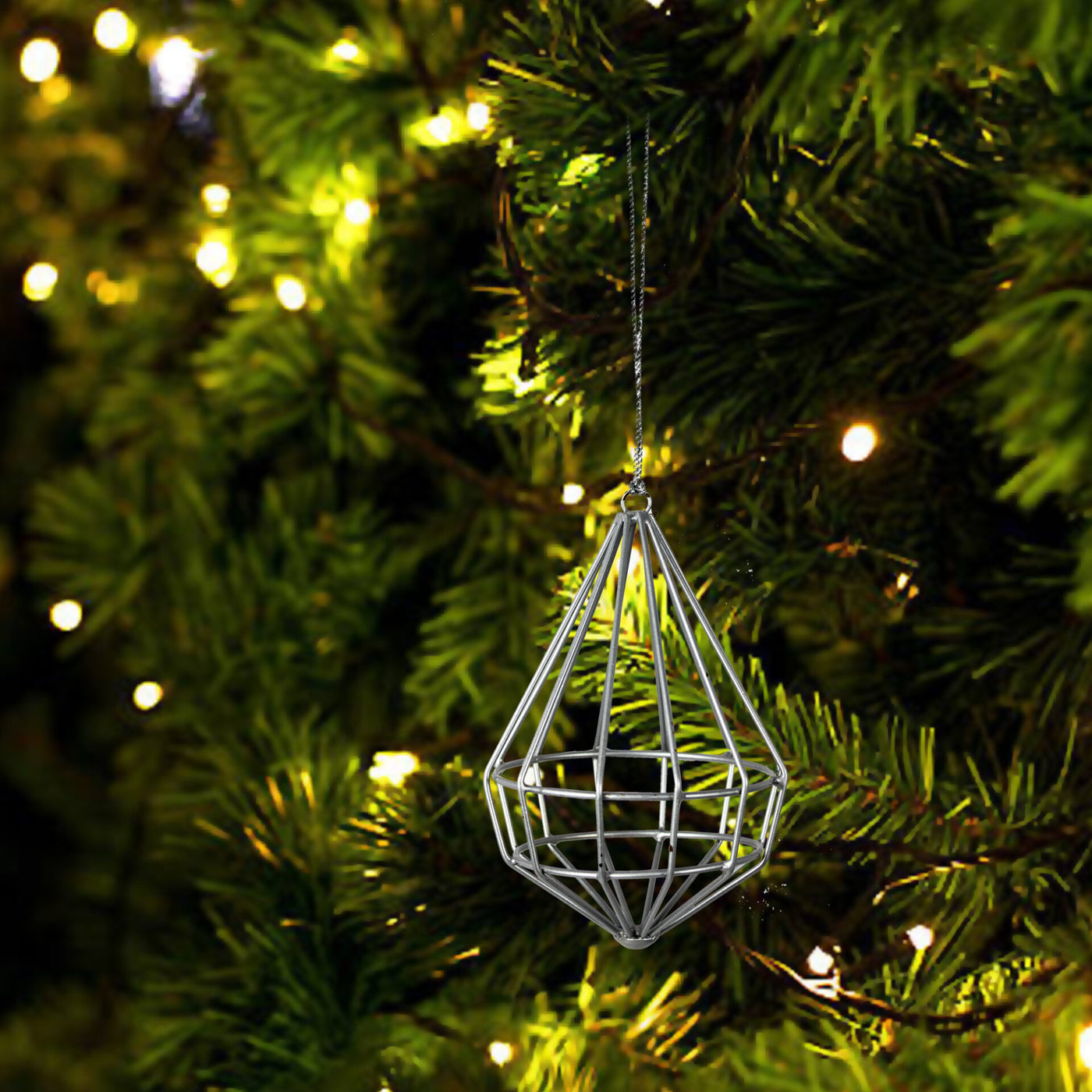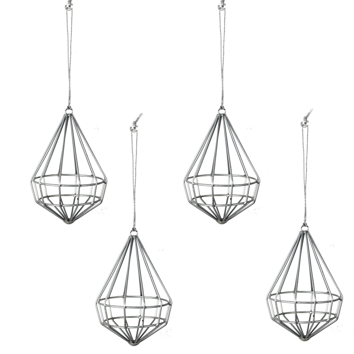 Set of 4 Silver Metal Diamond Shaped Ornaments