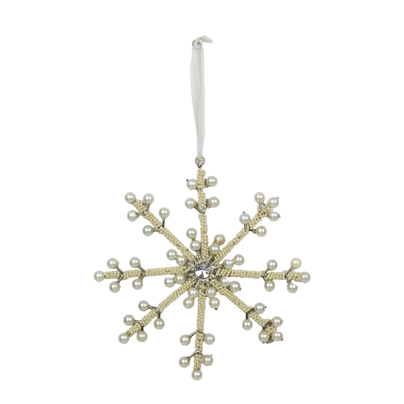 Set of 2 Beaded Snowflake Shaped Christmas Ornament
