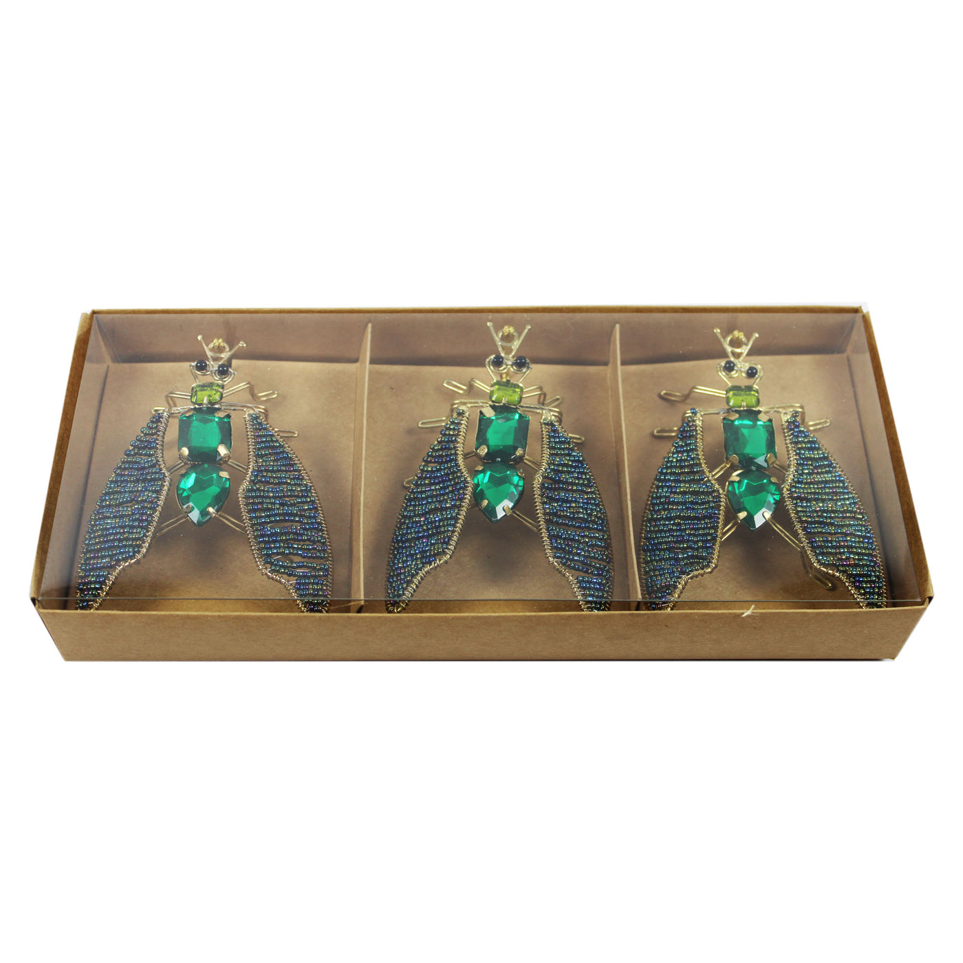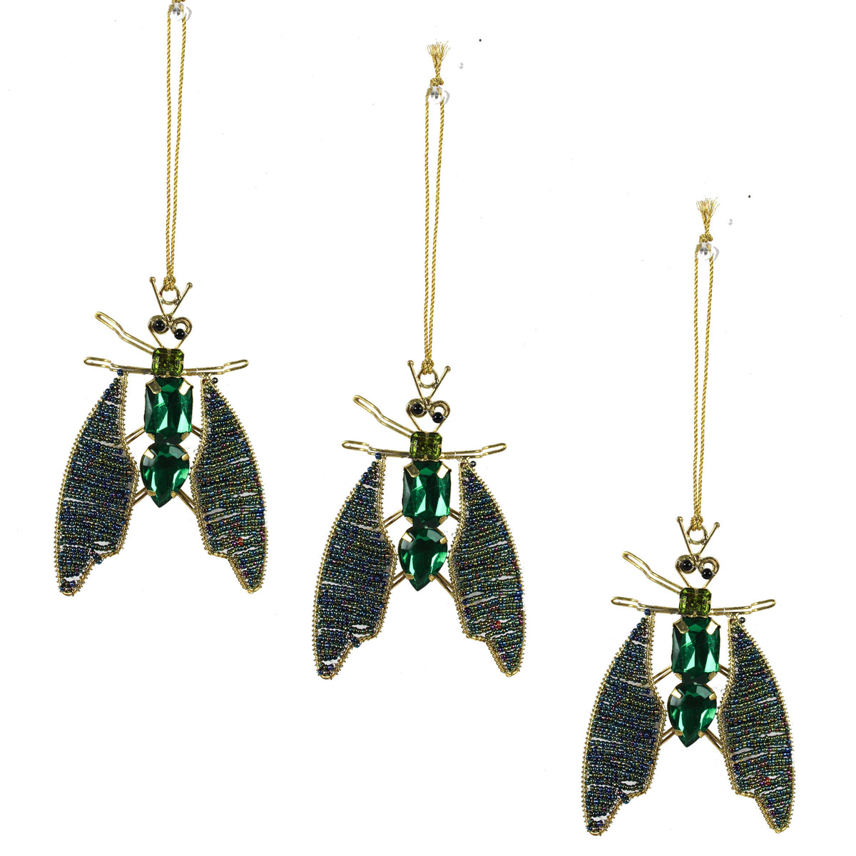 Set of 3 Beaded Bee Shaped Ornaments for Christmas Tree Decoration