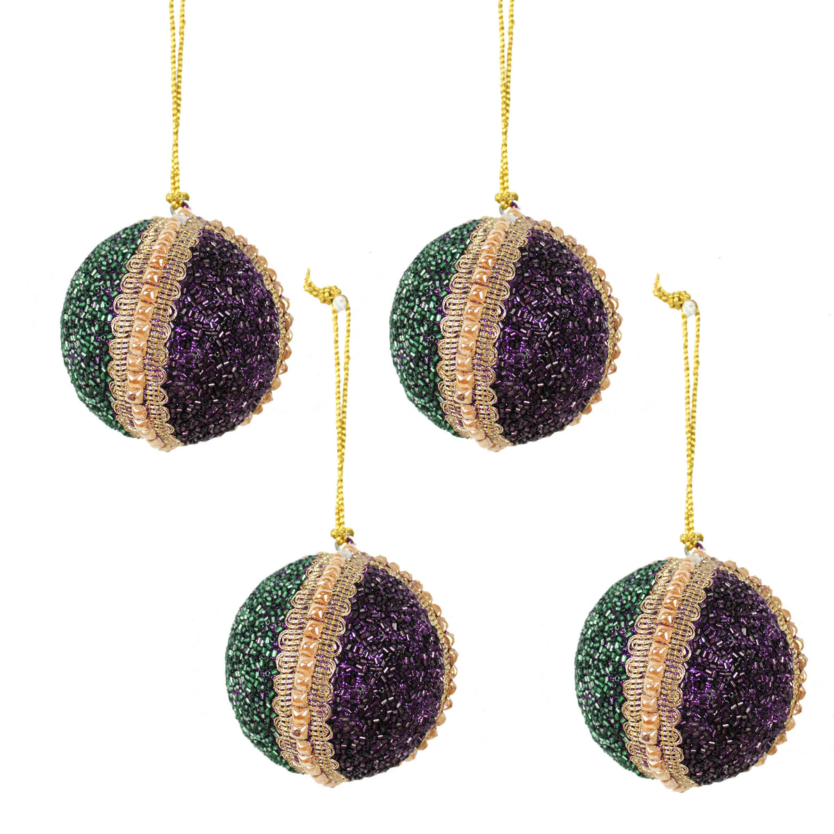 Set of 4 Multicolor Beaded Balls for Christmas Tree Decoration