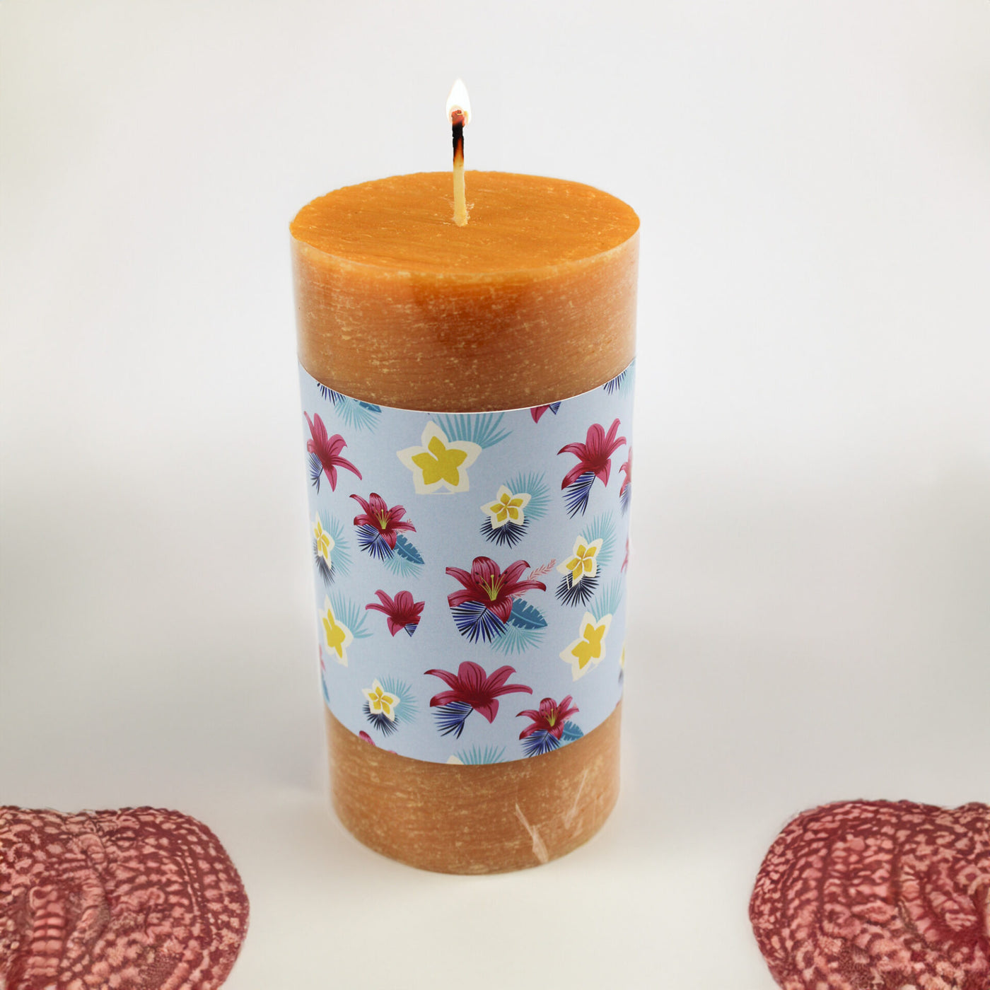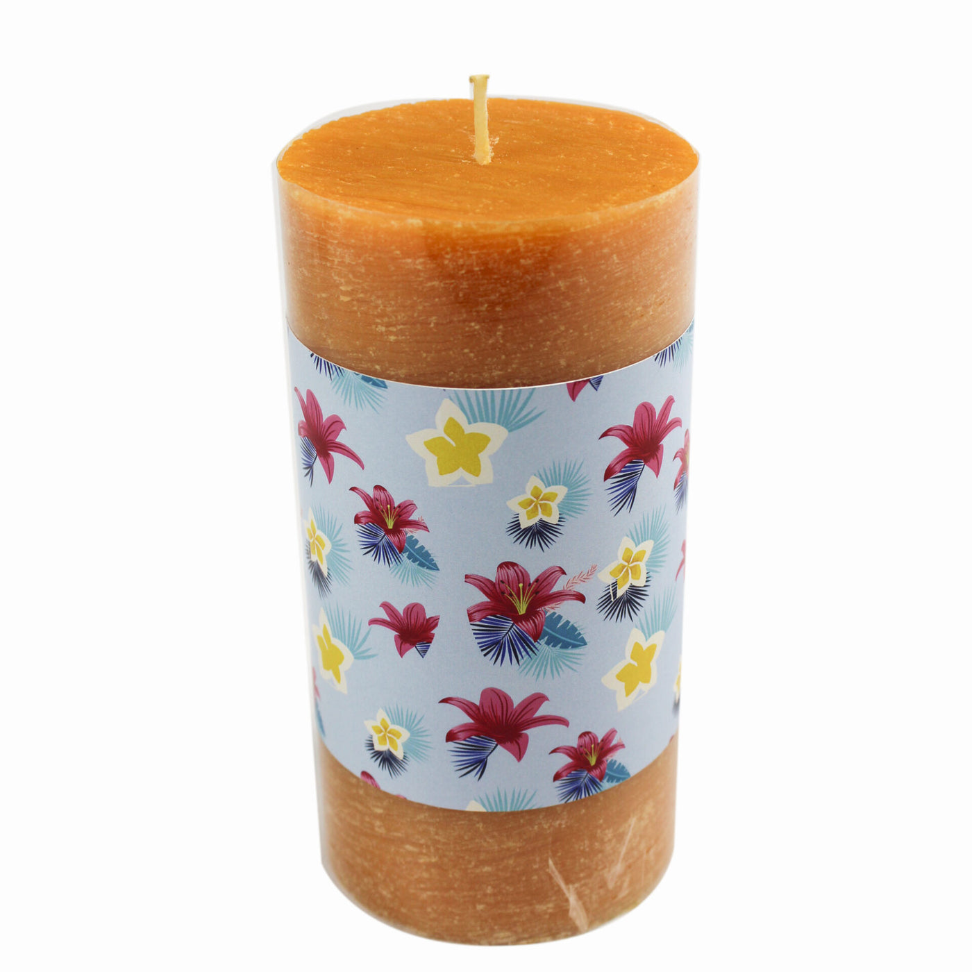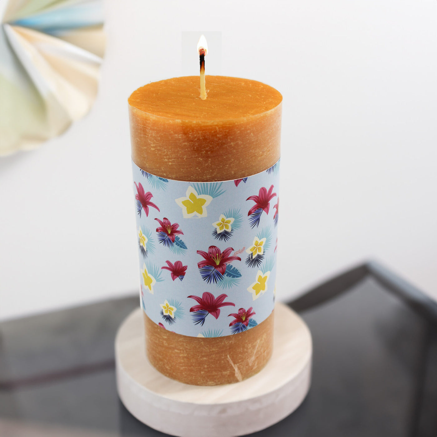 Beige Brushed Textured Pillar Candle Large for Gift & Home Decor