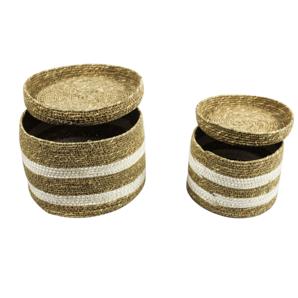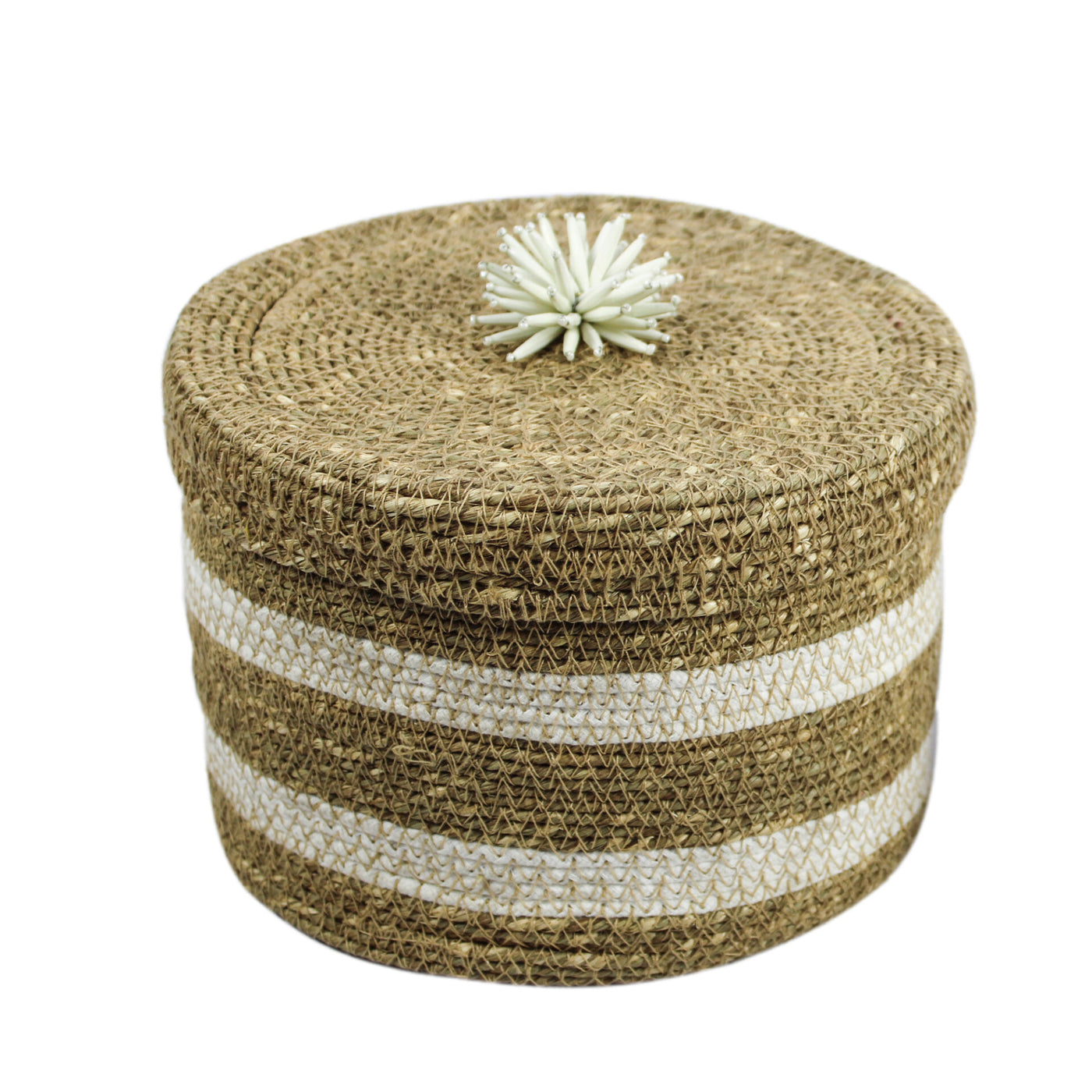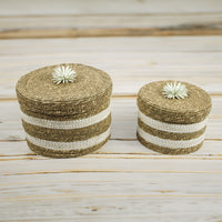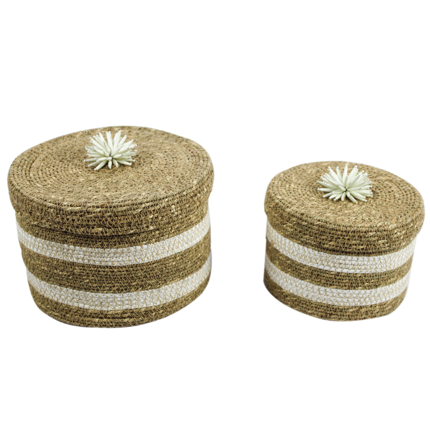 Set of 2 White Color Multipurpose Sea Grass Basket With Lid