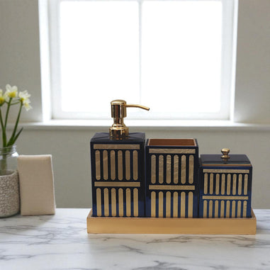 Bathroom Luxury Set include a Tray, Soap Dispenser, Toothbrush Holder, and Powder Box with Lid & Small Tray that are sure to add a touch of class to your bathroom.