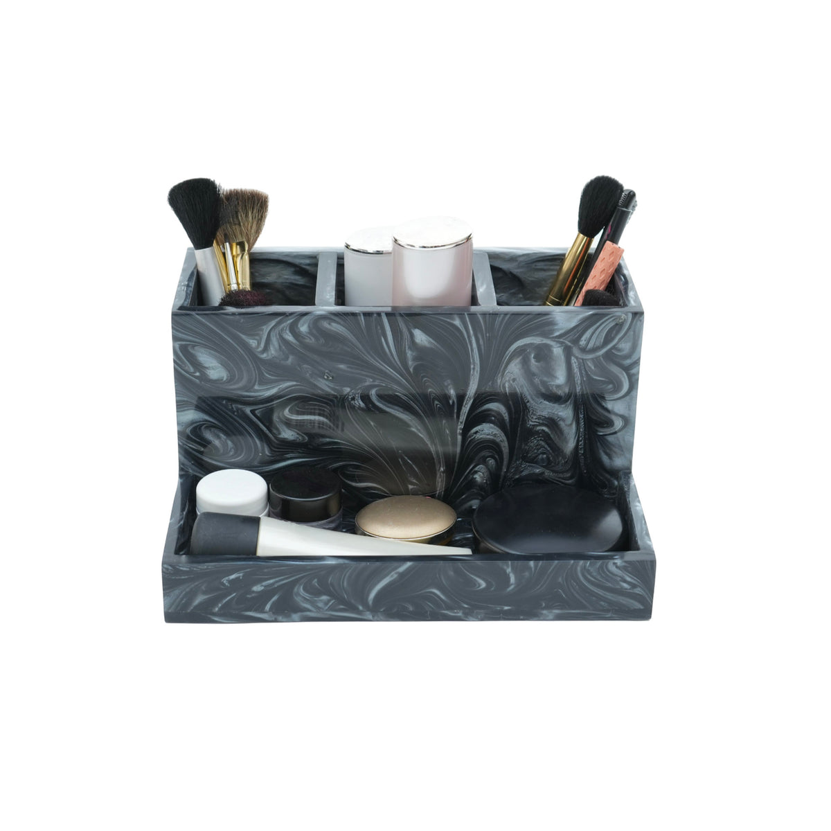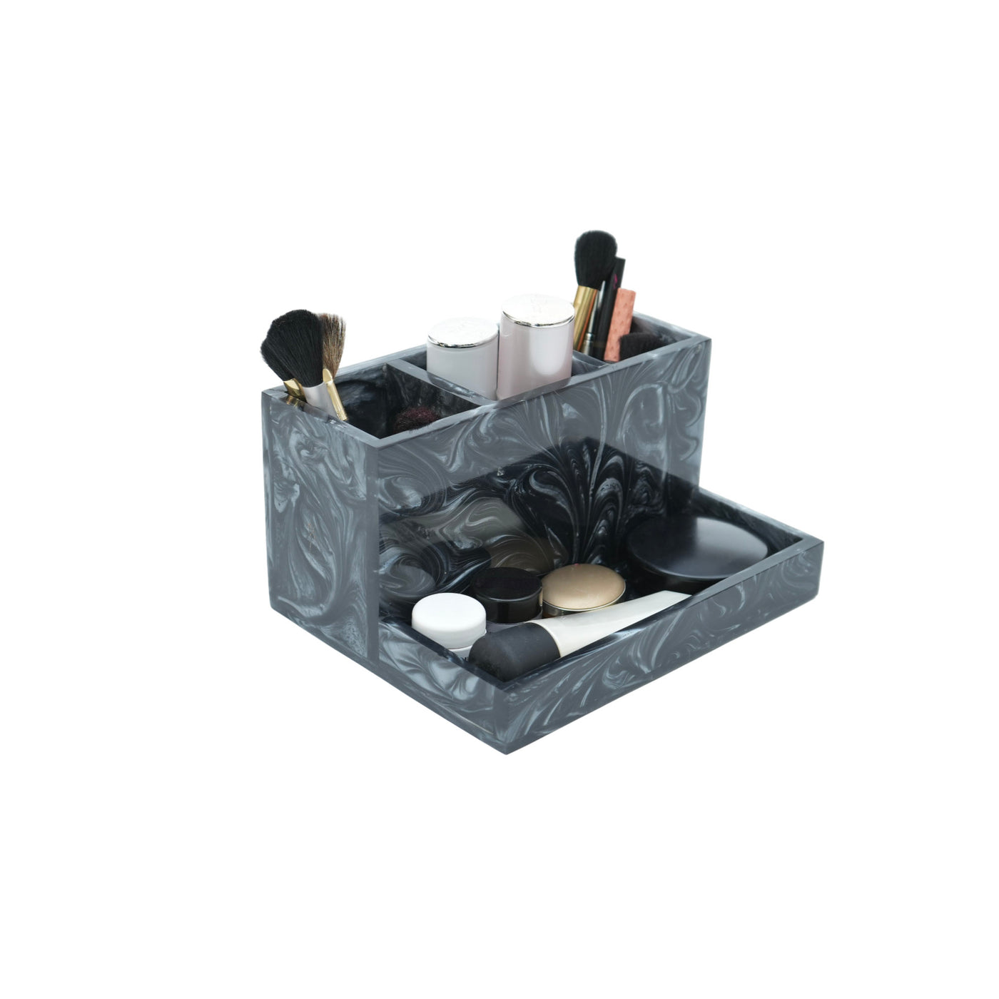 Crafted from durable, high-quality resin, this makeup organizer is designed to offer long-lasting use and reliability, making it a perfect addition to your vanity or dressing area.