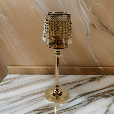 This Candle Holder made of brass & Glass beads give elegant look when placed at hall, dining room and office.