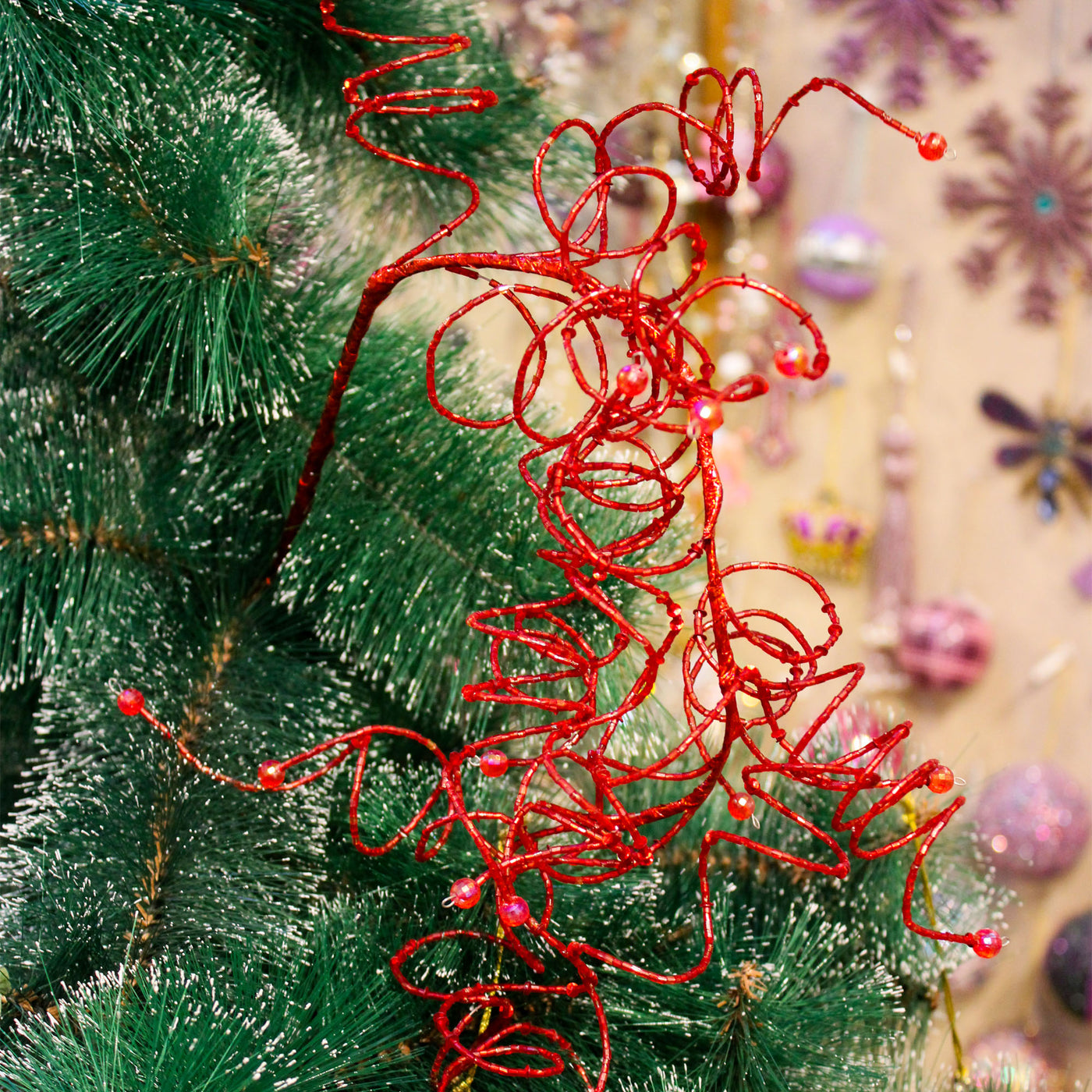 Set of 2 Beaded Red Christmas Tree Decorative Spray