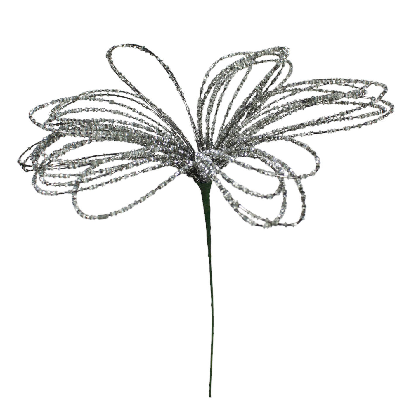 Set of 2 Beaded Silver Christmas Tree Decorative Spray
