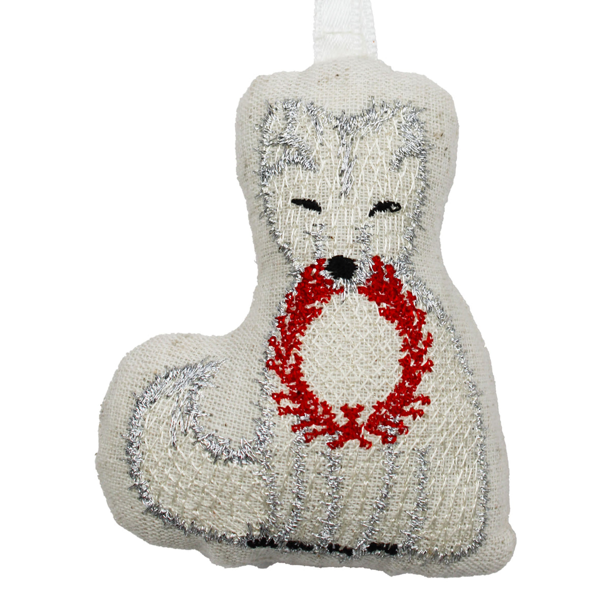 Set of 2 Embroidered Cat Christmas Hanging Ornament