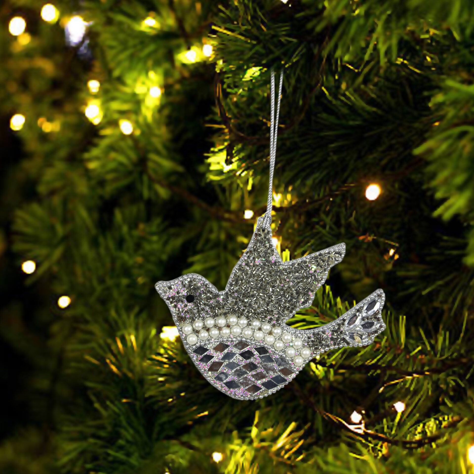 Set of 2 Beaded Bird Shaped Christmas Tree Decoration