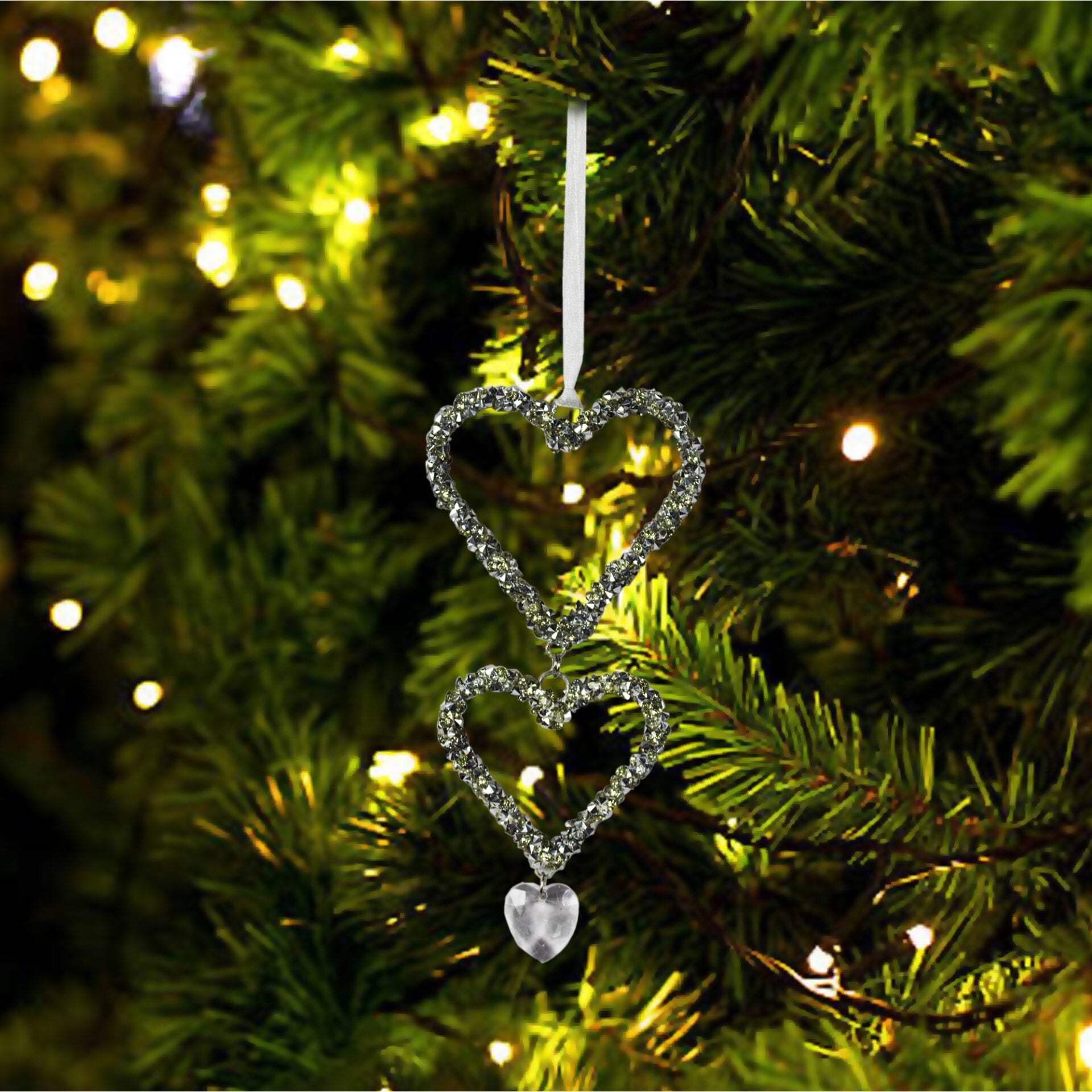 Set of 4 Double Heart Christmas Tree Decorative Ornament