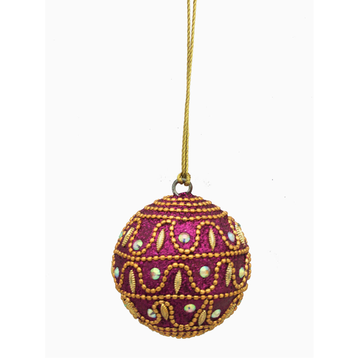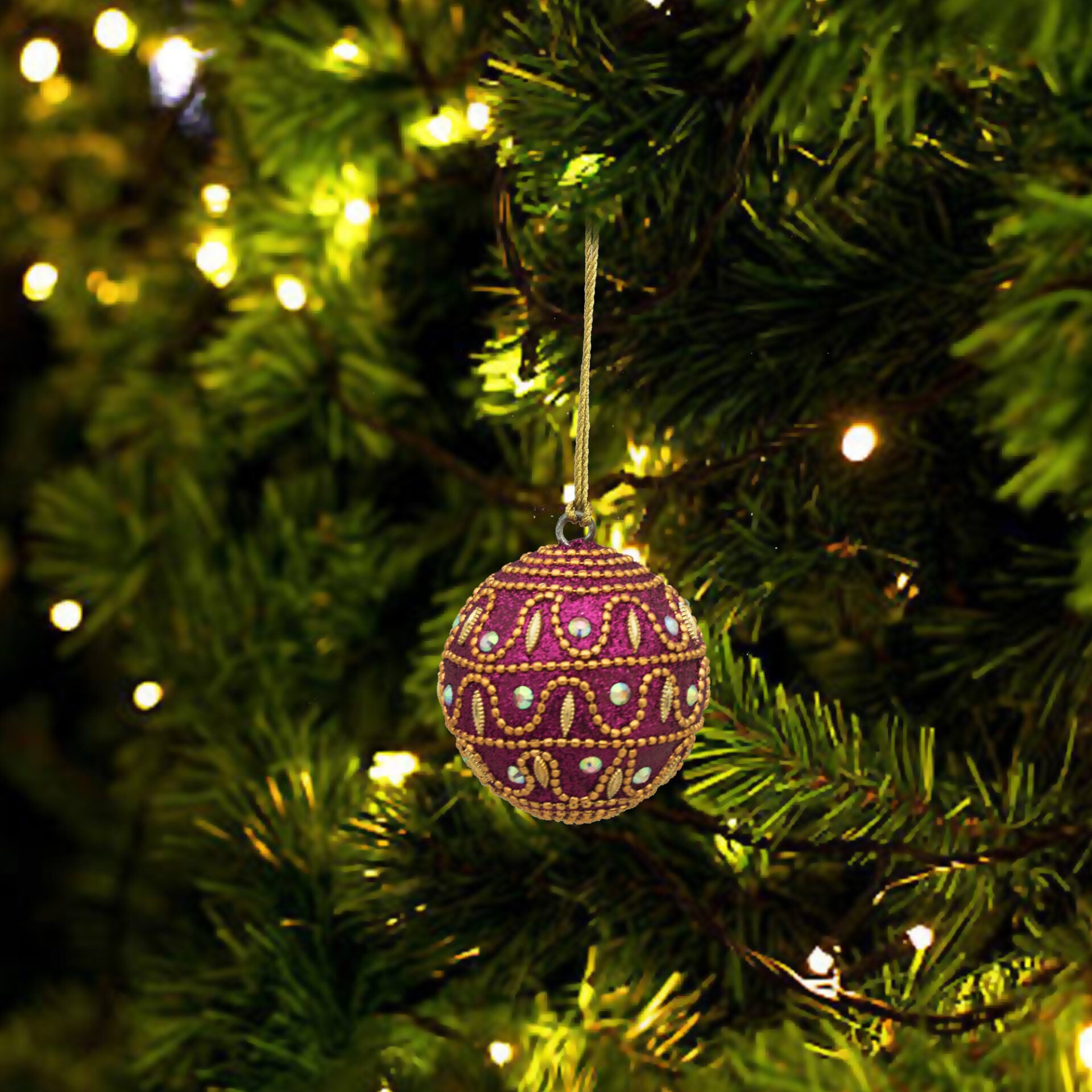 Set of 6 Beaded with Lac Christmas Tree Decorative Balls