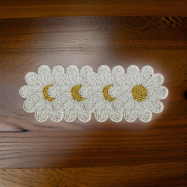 This beaded coasters set is a stylish and practical addition to any dining or living space. The set includes four coasters, making it a functional and elegant way to protect your surfaces