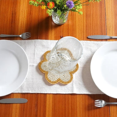 This beaded embroidered coasters set is a stylish and practical addition to any dining or living space. The set includes four coasters , making it a functional and elegant way to protect your surfaces