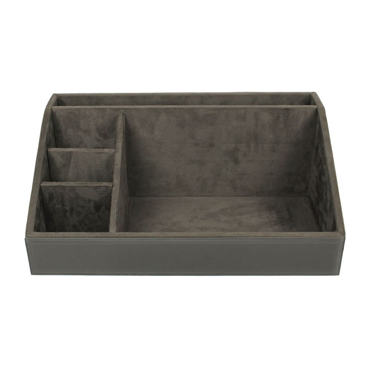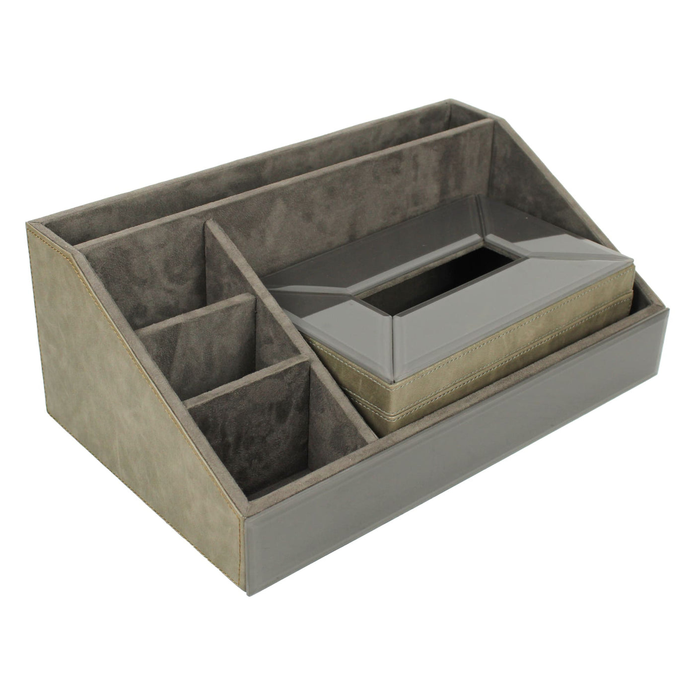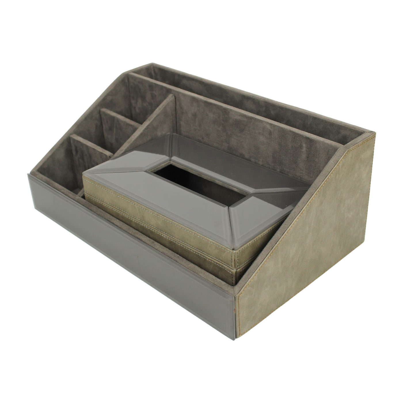 Premium Grey Leatherite Stationery Desk Organizer With Tissue Box