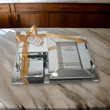 VERSATILE & STYLISH- The sleek, modern design of the tray, photo frame, utility box and coasters complements any home or office décor.