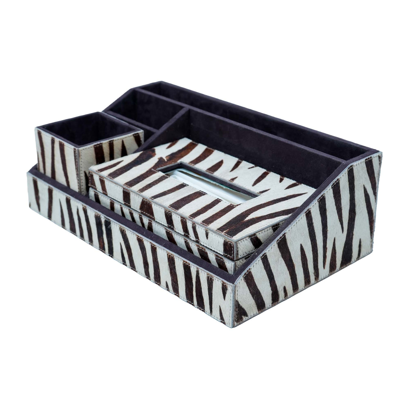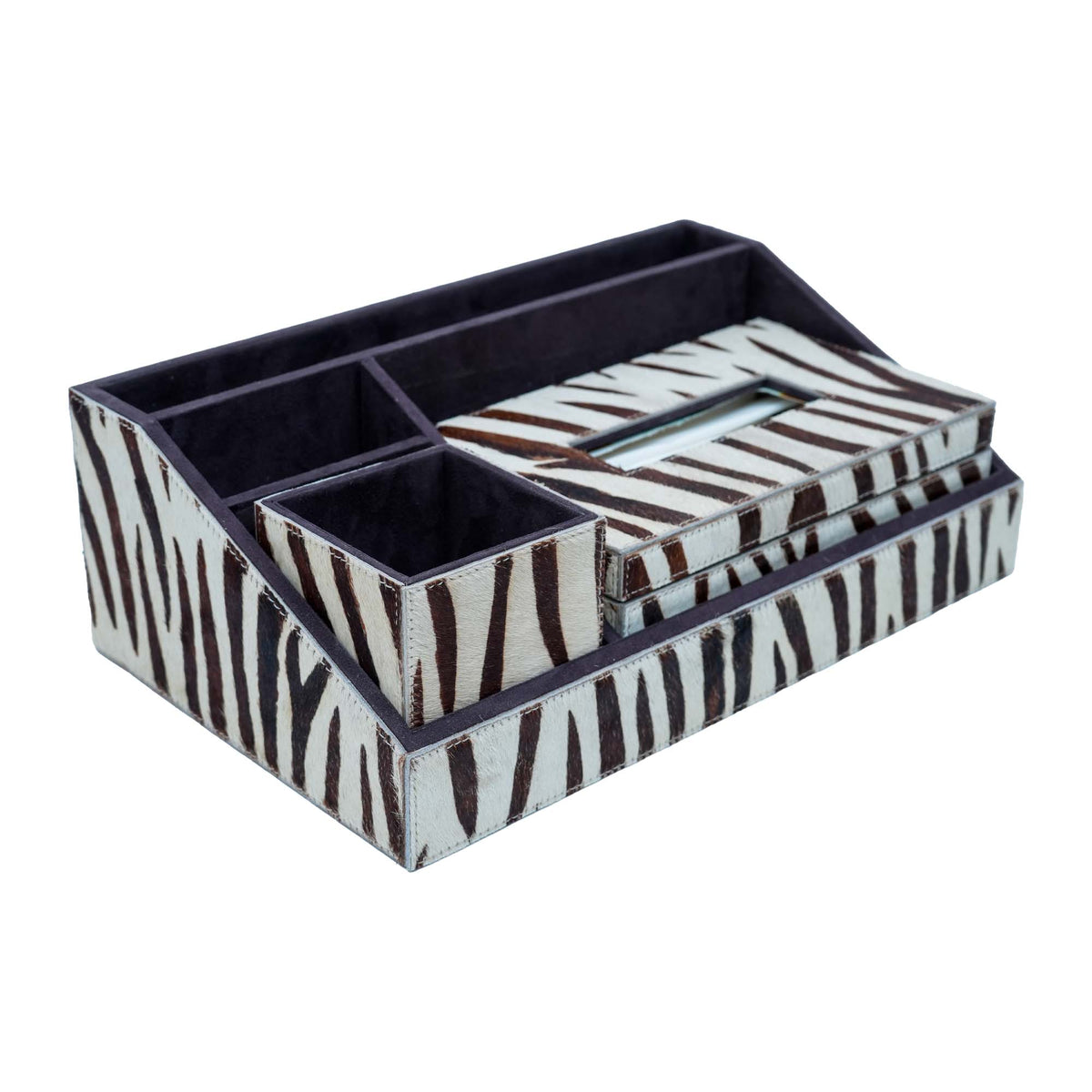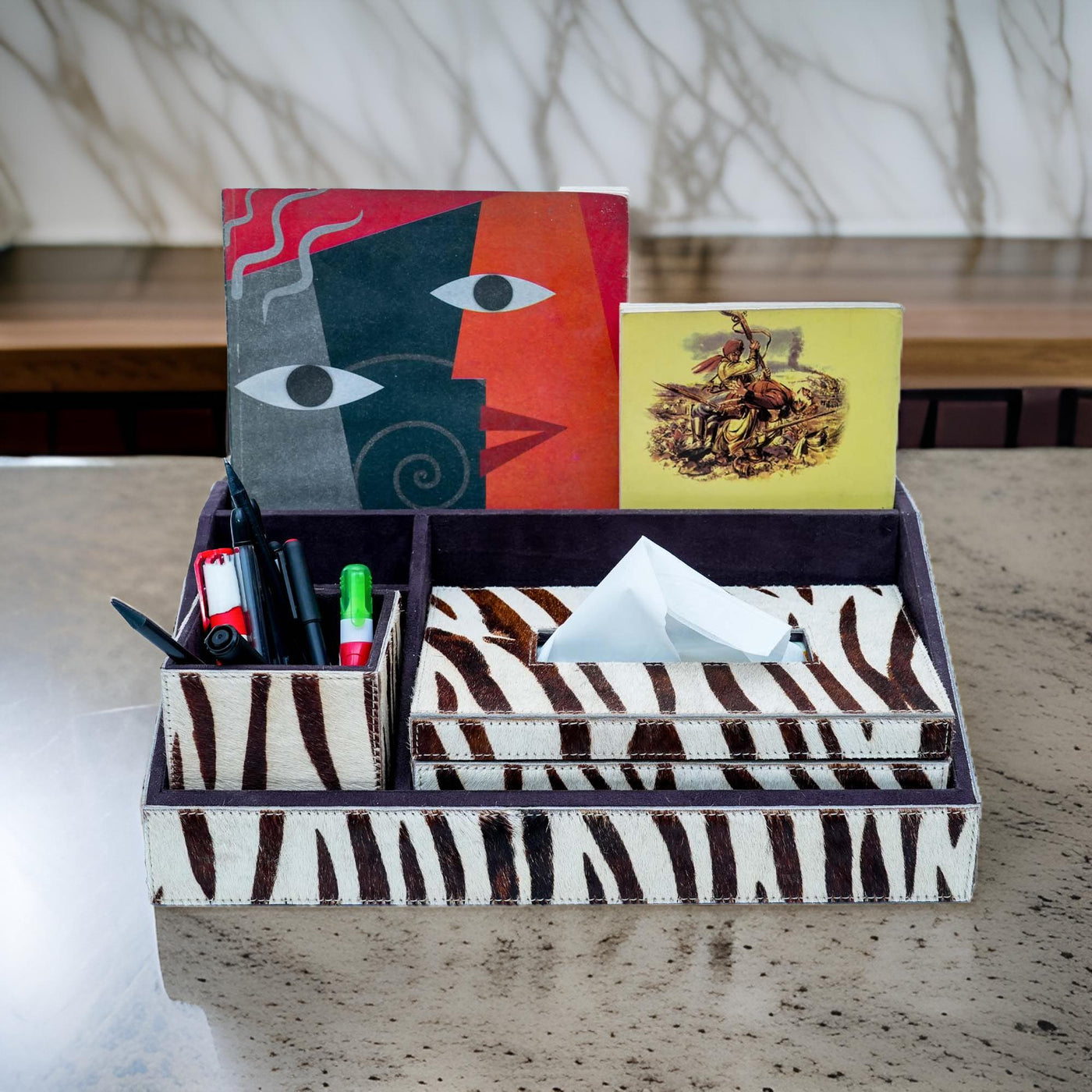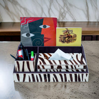 Premium White Brown Printed Stationery Desk Organizer With Tissue Box