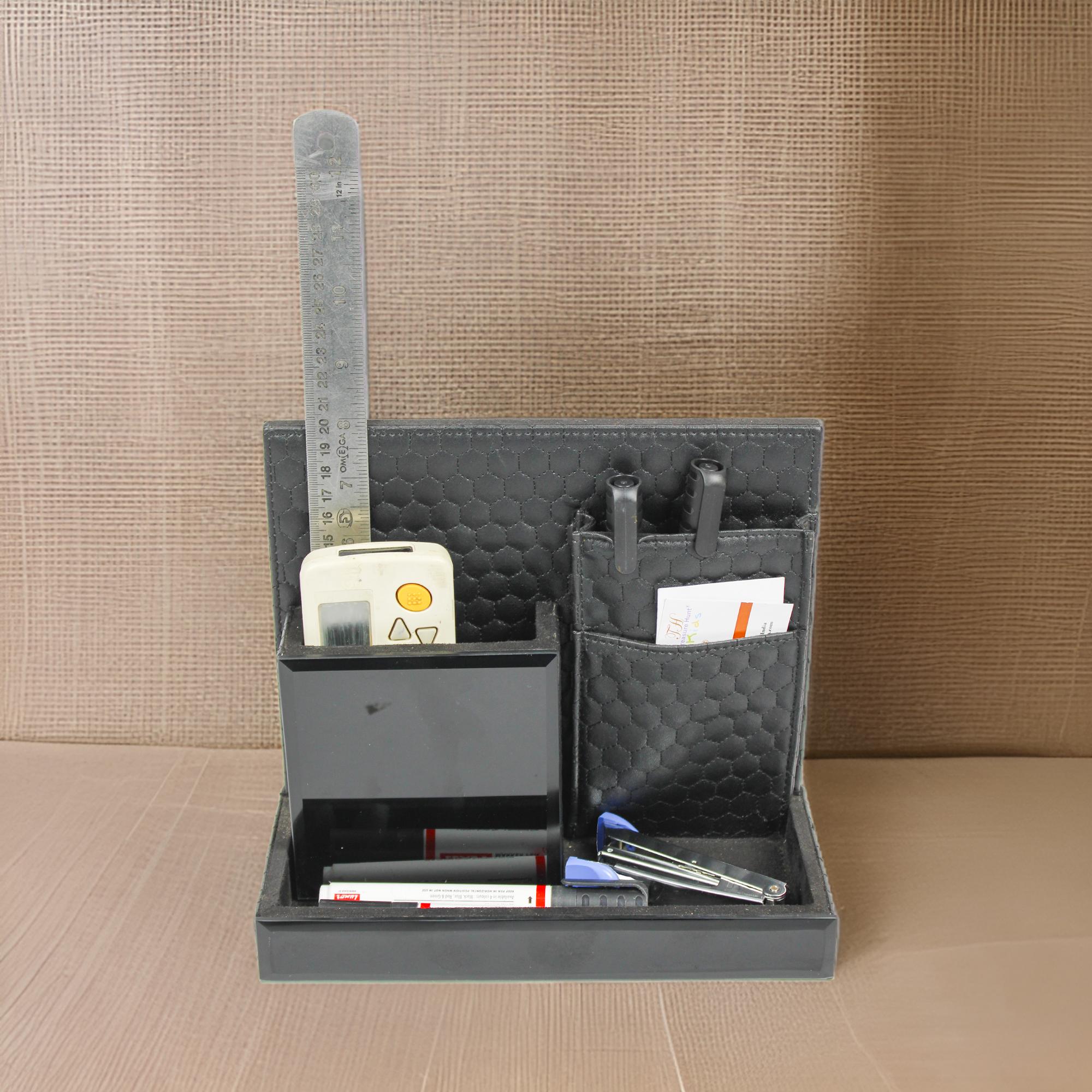 Premium Black leatherite Stationery Organizer & Remote Holder