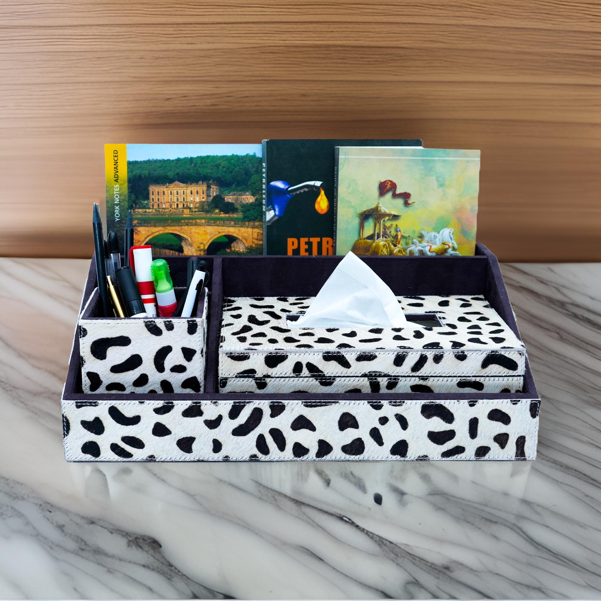 Premium Black White Stationery Desk Organizer With Tissue Box