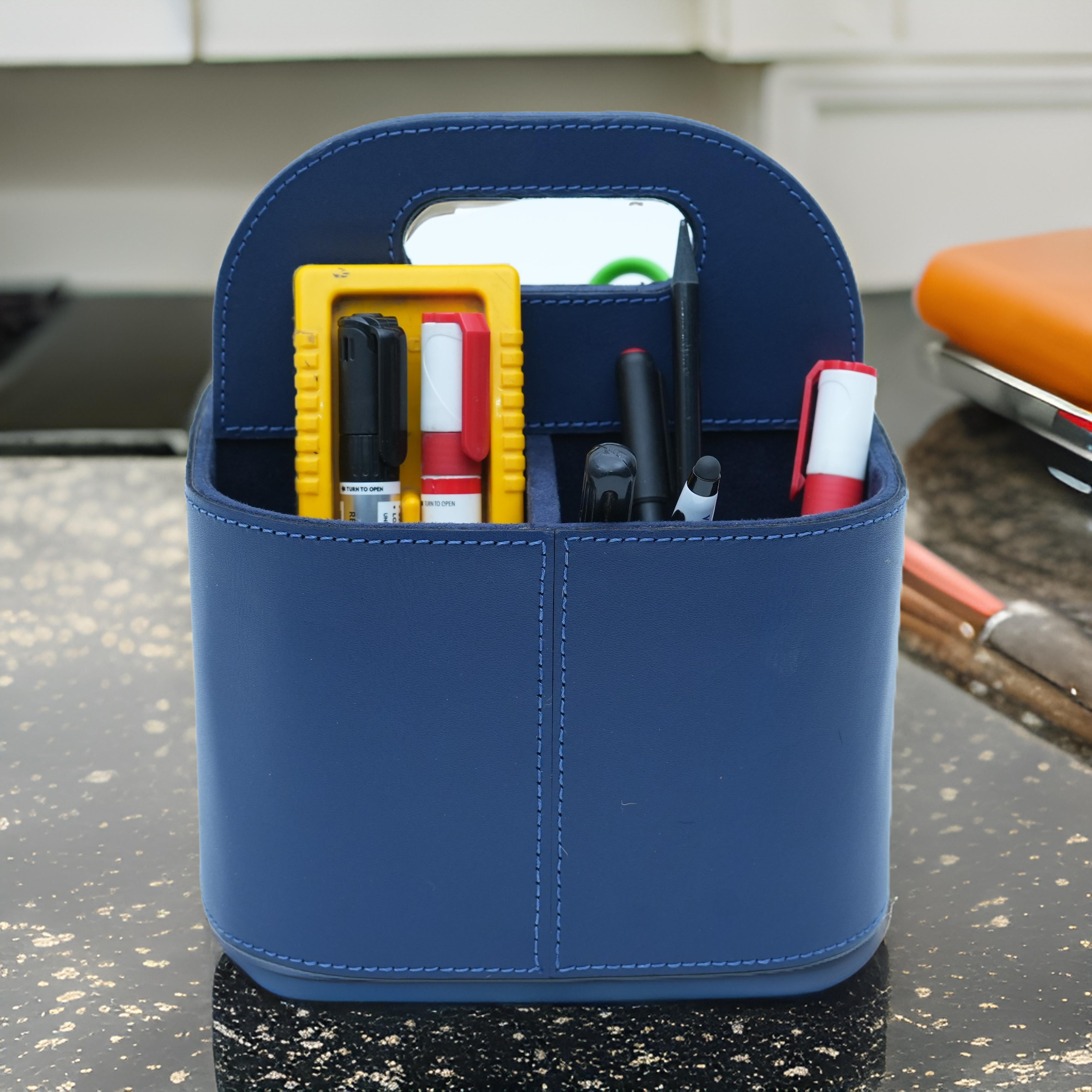 Premium Blue Leather Desk Organizer