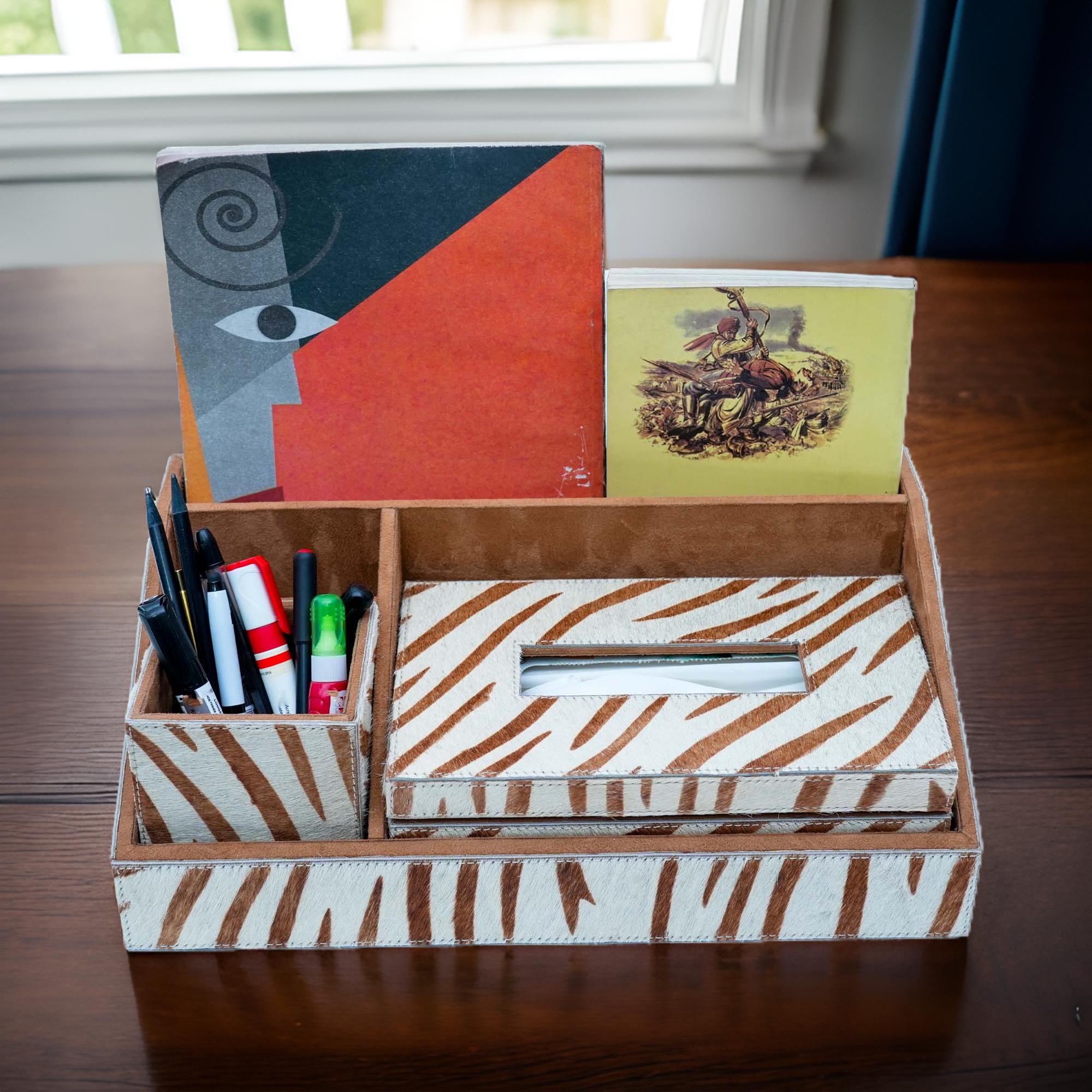 Premium Brown White Stationery Desk Organizer With Tissue Box