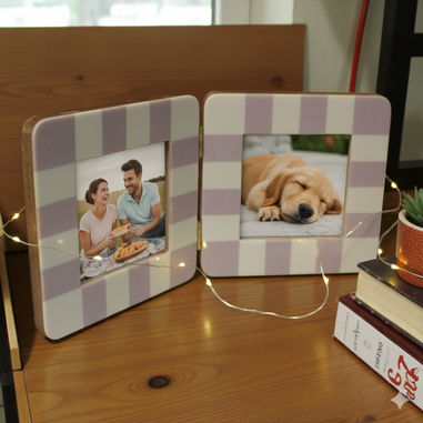 Chic Lavender & White Striped Double Hinged Picture Frame