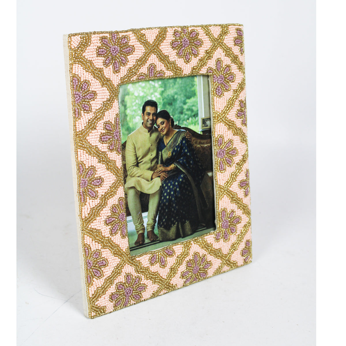 Artisanal Craftsmanship: Every bead is carefully hand-applied to create a dense, high-quality texture that elevates the frame from a simple accessory to a decorative centerpiece.