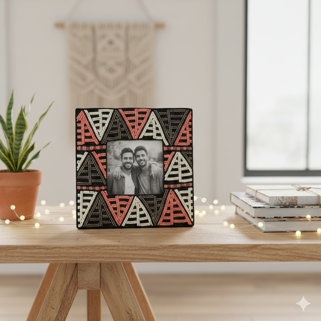 Tribal Geometric Hand-Beaded Artisan Photo Frame