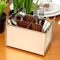 Luxury Rose Gold Glass Cutlery Holder With Four Partition - blue