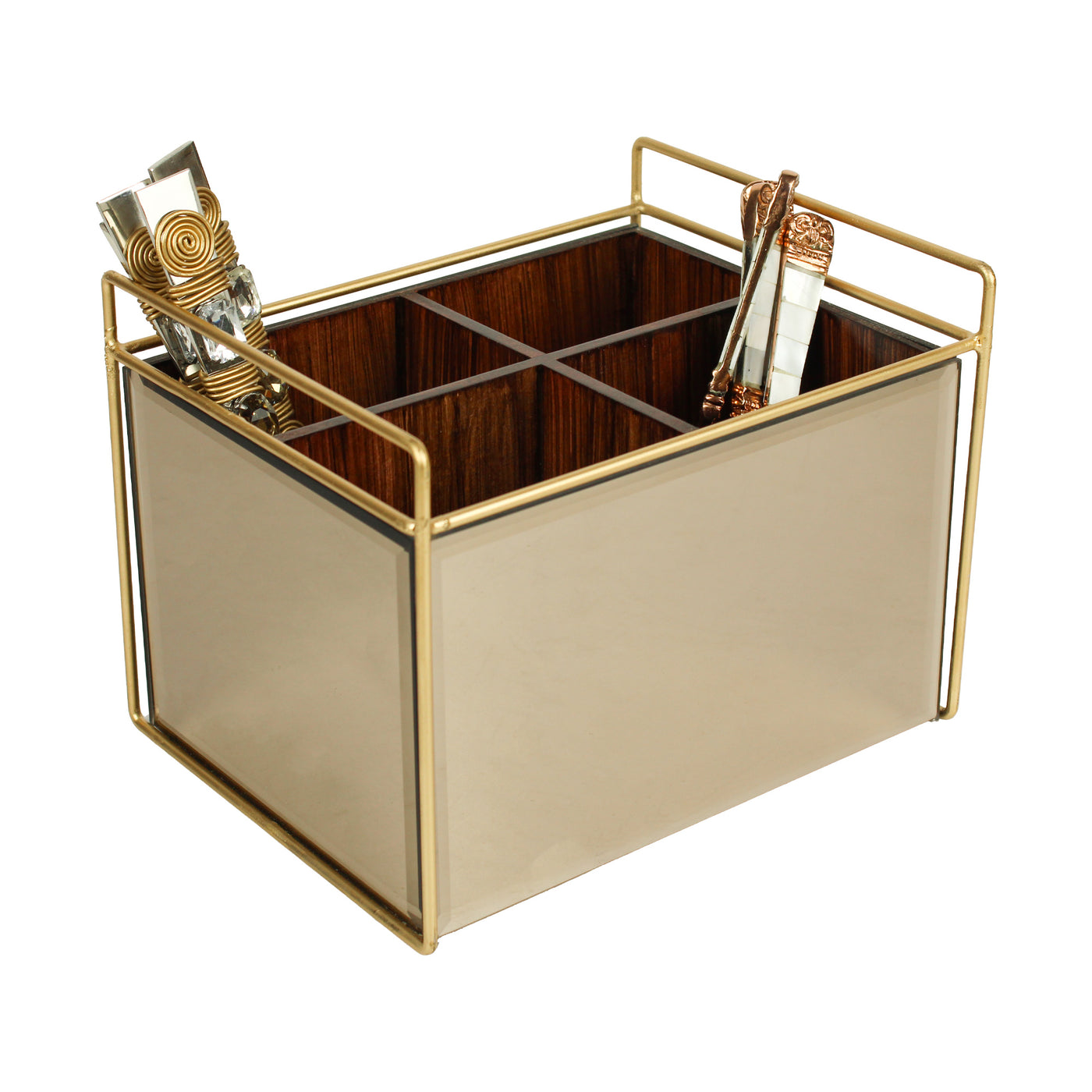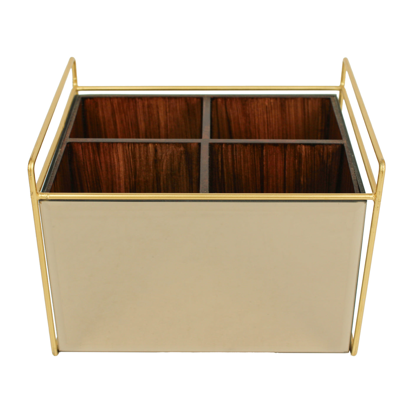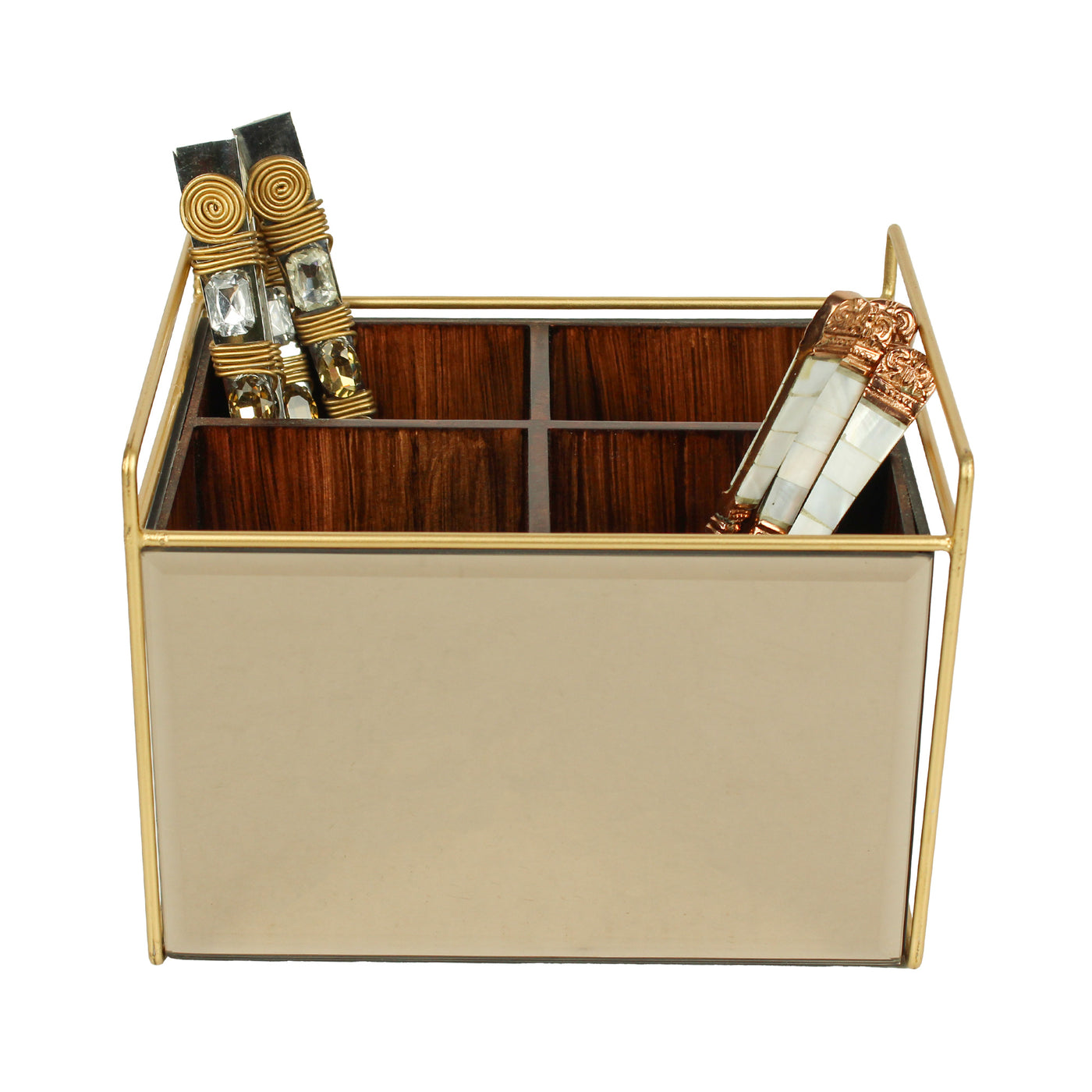 Luxury Brown Glass Cutlery Holder With Four Partition
