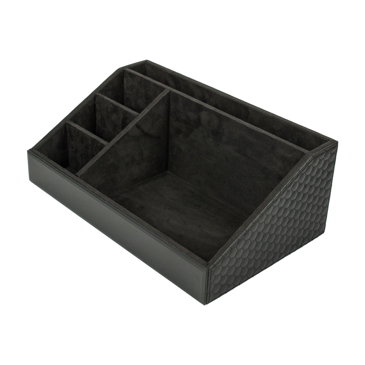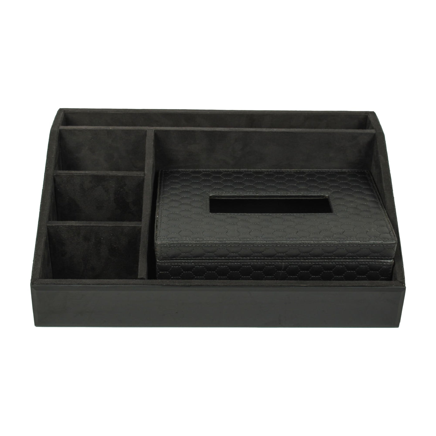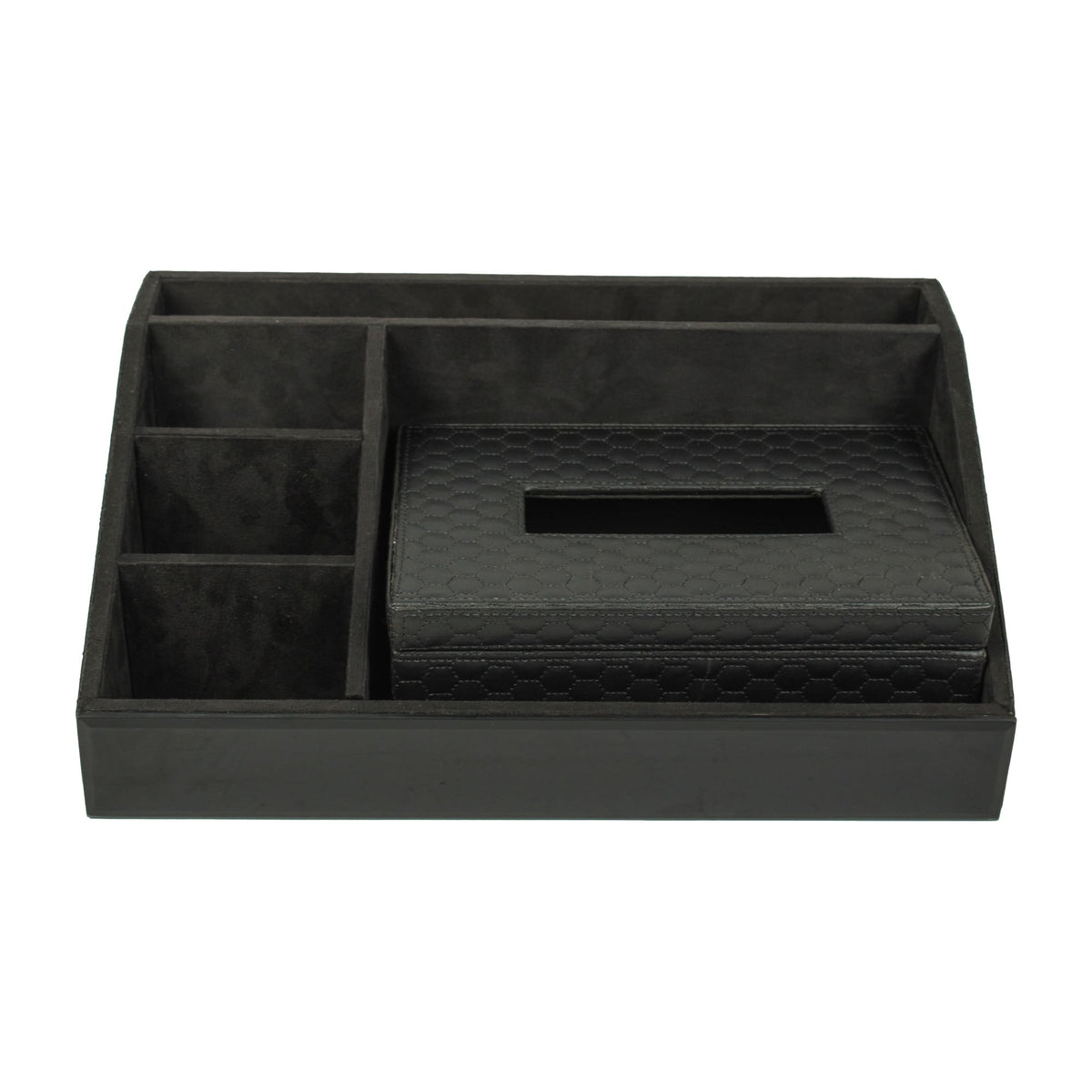 Premium Black Leatherite Stationery Desk Organizer With Tissue Box