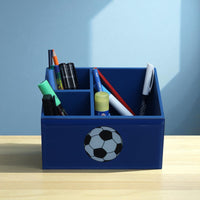 Premium Blue Glass Stationery Desk Organizer with Football Design