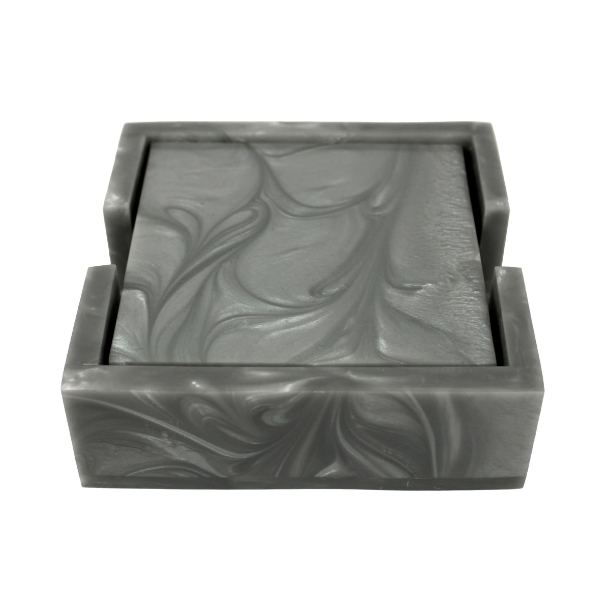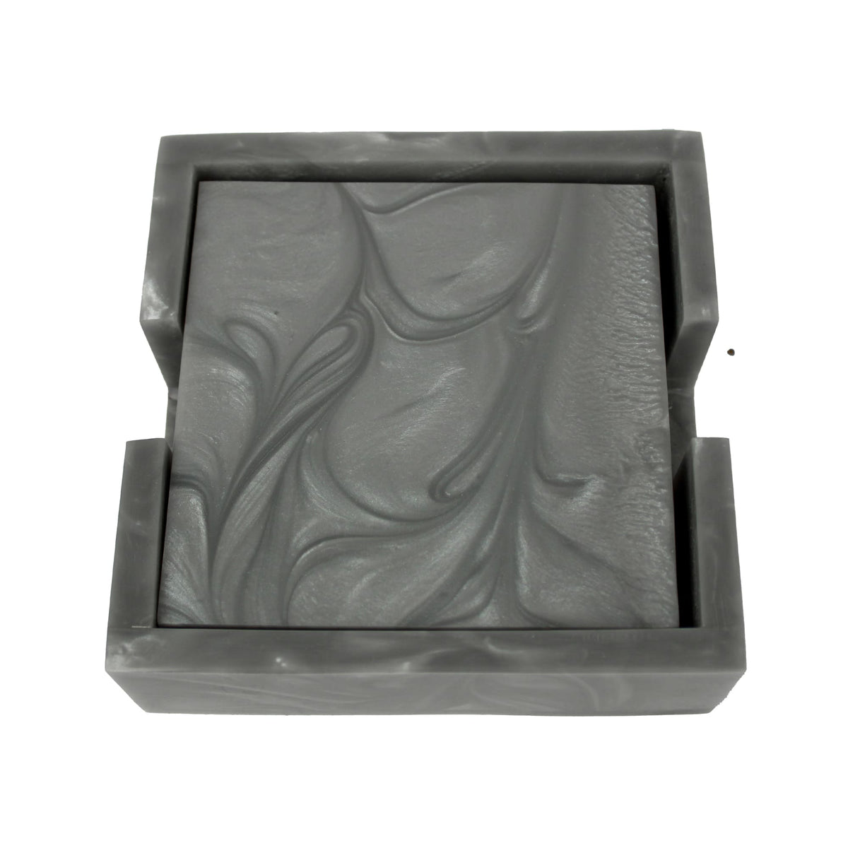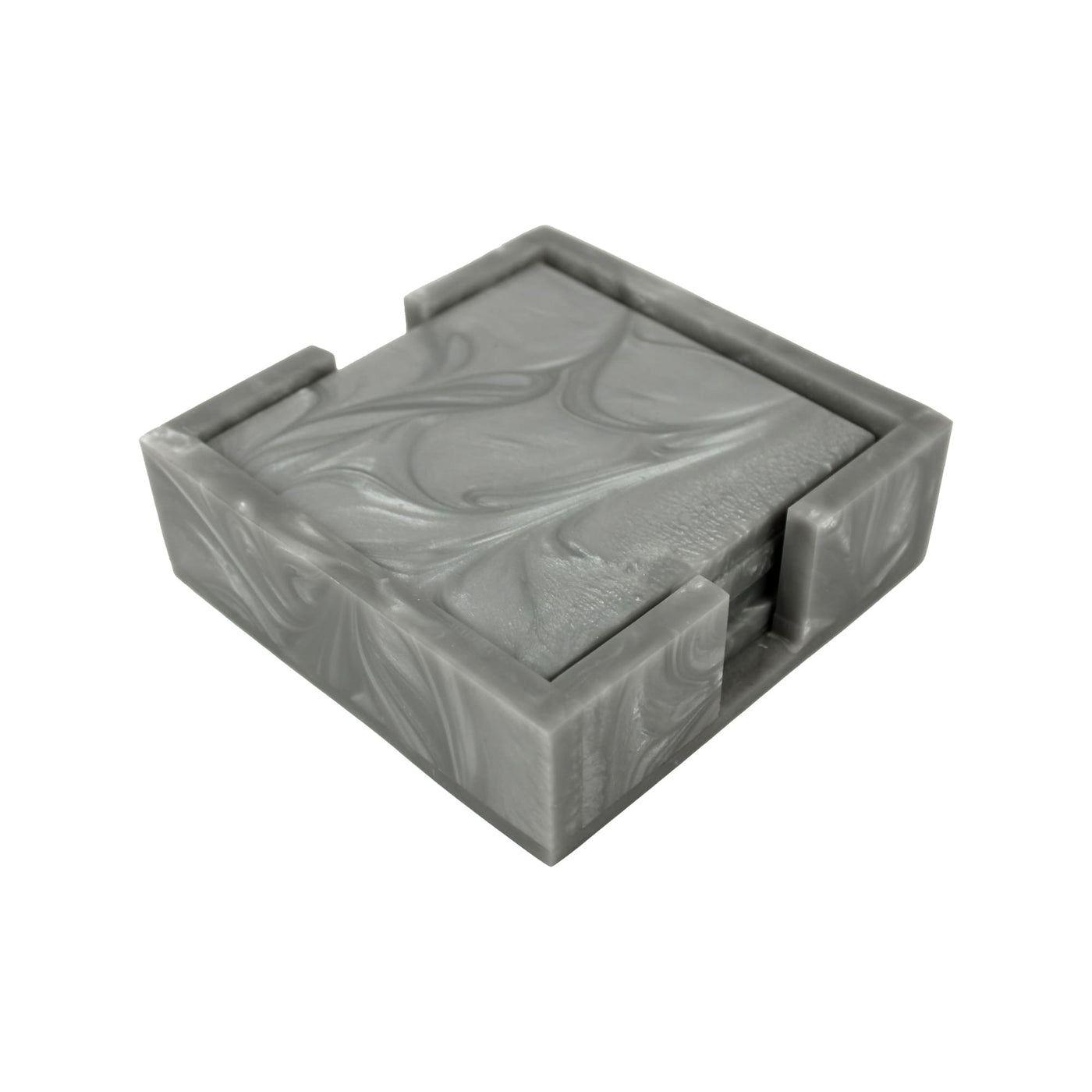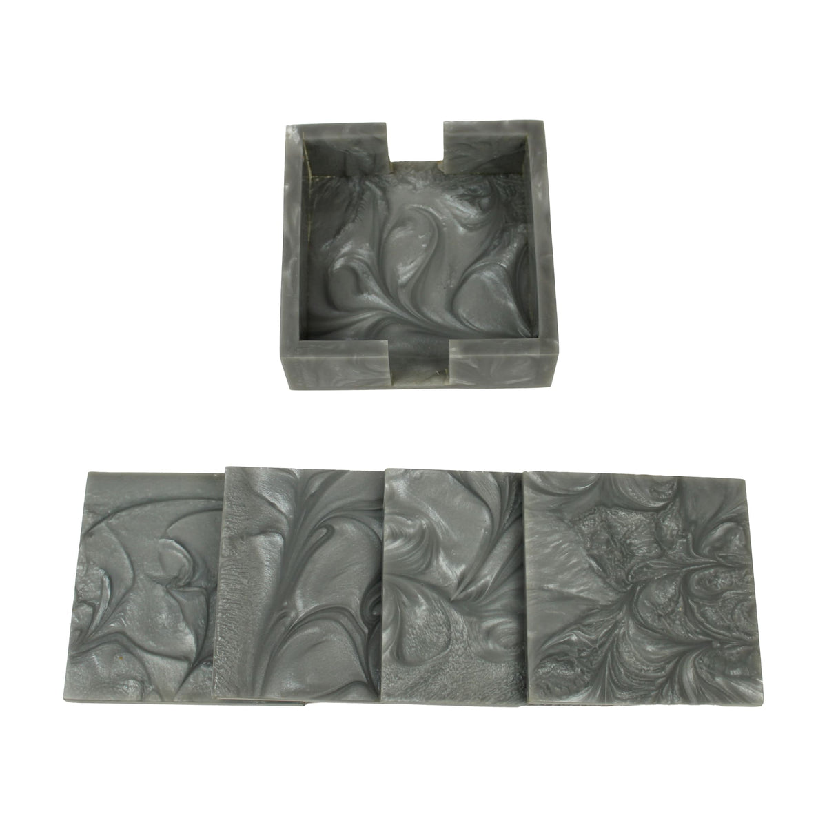 Grey Resin Coaster Set of Four with Caddy Tray